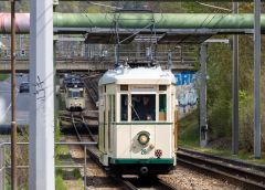 Jena. 125 Jahre Straßenbahn in Jena: Fahrzeug-Korso lockte Hunderte Schaulustige an.