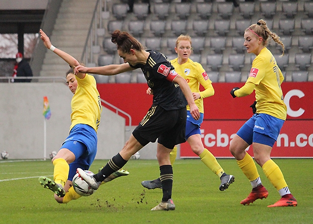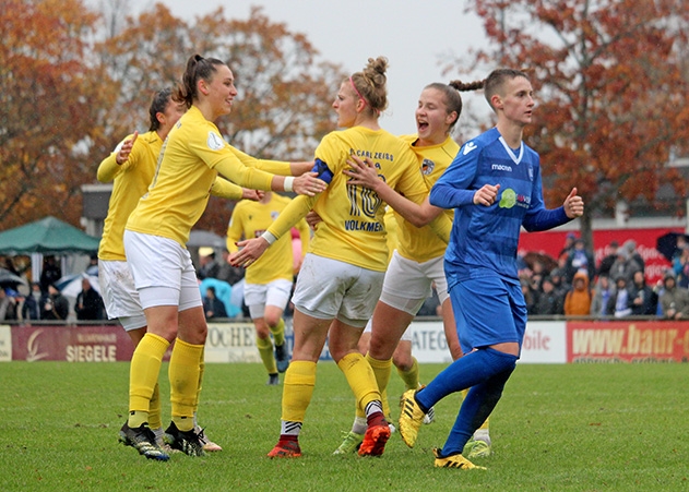 Jena. Einzug ins Pokal-Viertelfinale: Jenas FCC-Frauen gewinnen am Samstag beim Karlsruher SC mit 3:1 (0:0).