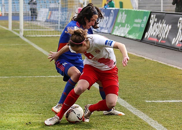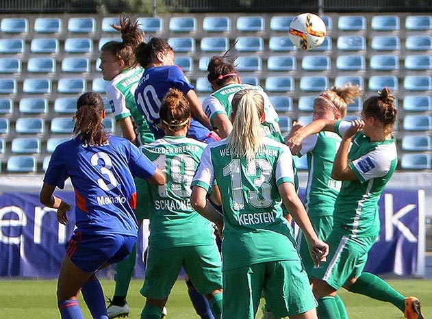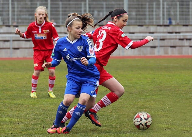 Bremen/Jena. Trotz schwer bespielbarem Platz konnte sich der FF USV Jena im Aufwärtsspiel gegen den SV Werder Bremen einen 2:1-Sieg erkämpfen.