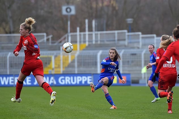 Jena. Mit einem 3:1-Heimsieg gegen Bayer Leverkusen konnte der FF USV Jena in der Bundesliga den Abstand zur Werkself auf sieben Punkte ausbauen.