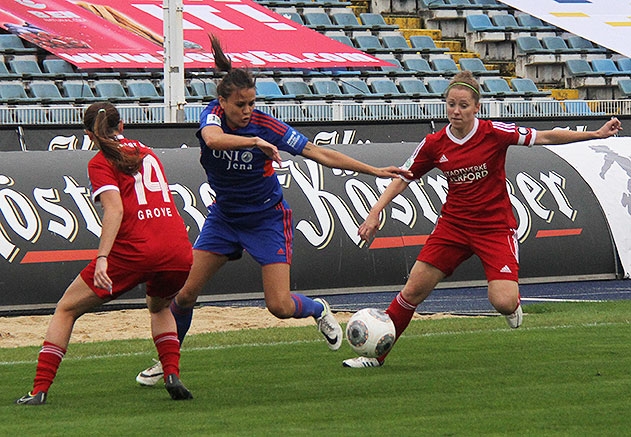 Jena. Die Mannschaft des FF USV Jena mußte sich am Sonntag gegen den 1. FFC Frankfurt mit 1:4 geschlagen geben.