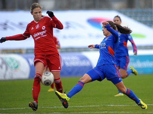 Jena. Im ersten Rückrundenspiel in der Allianz Frauen-Bundesliga gewinnt der FF USV Jena gegen den SC Sand mit 3:1 (2:1).