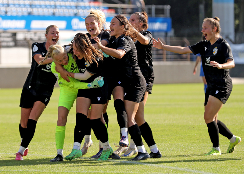 Jena. DFB-Pokal: Die Frauen des FC Carl Zeiss Jena gewinnen am Samstag beim SV Meppen mit 4:3 (0:0, 1:1) nach Elfmeterschießen.