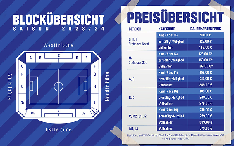 Wer in der abgelaufenen Saison aus Block A bzw. B wegen der Umbaumaßnahmen in einen anderen Stadionbereich wechseln musste und dort eine Dauerkarte besaß, findet darüber hinaus im Bereich „Reservierung“ auch seinen alten Stammplatz aus der Saison 2021/22.