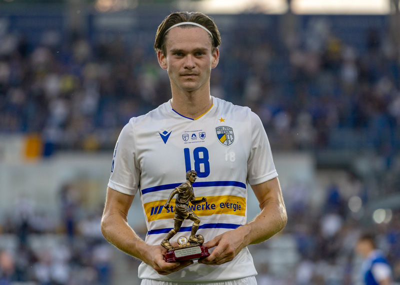 Elias Löder wurde in der Halbzeitpause von der OTZ als „FCC-Spieler der Saison 2023/24“ ausgezeichnet.