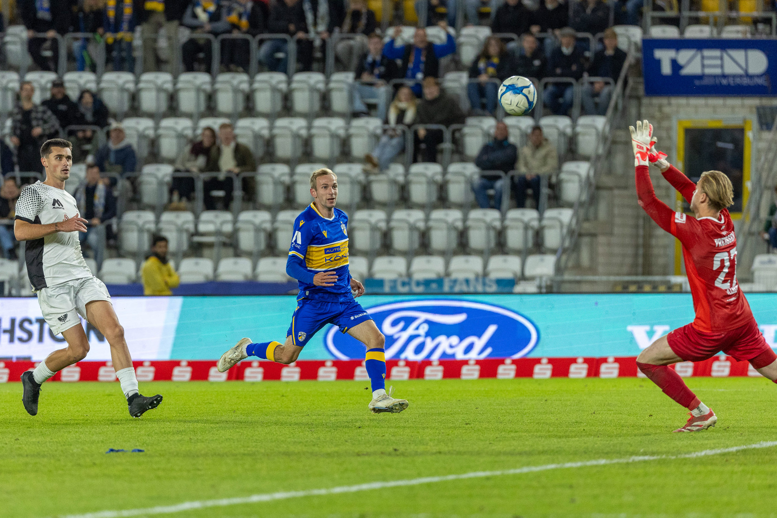Als wieder gespielt wurde, fast der Doppelschlag für die Gäste. Chadi Ramadan spielte das Leder zum freistehenden Adekunle in die Mitte.
