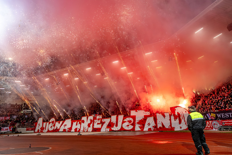 Die Anfangsphase war geprägt von Unterbrechungen, da Erfurter Fans wiederholt Pyrotechnik zündeten und sogar Raketen in Richtung Spielfeld abfeuerten.