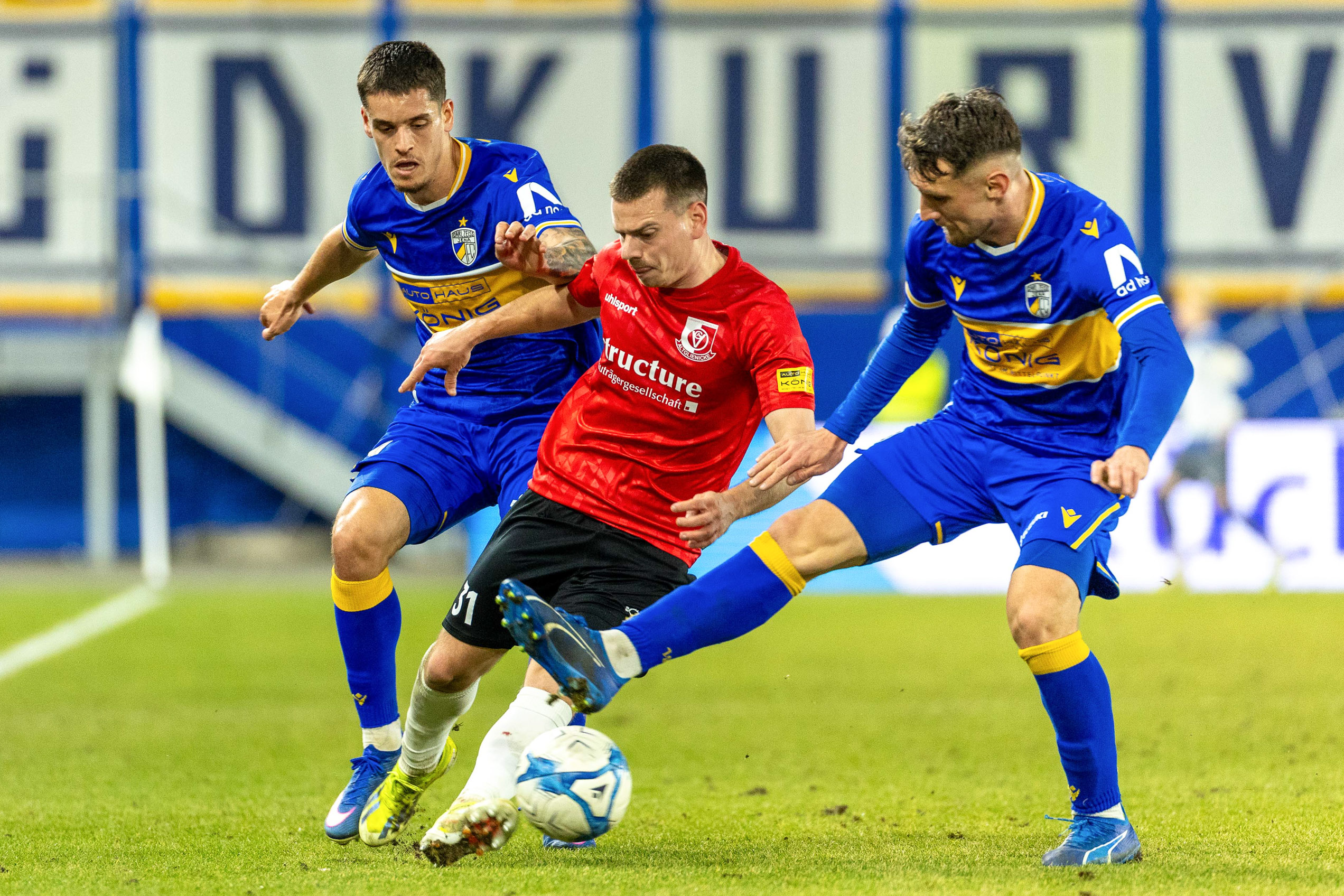 Die Gastgeber kamen mit Schwung aus der Pause. Moritz Fritz’ Schuss aus spitzem Winkel strich über den Kasten (49.). Amar Suljic stand nach einem Abwehrfehler der VSG plötzlich frei, zog sofort ab, doch Klatte parierte stark (52.).
