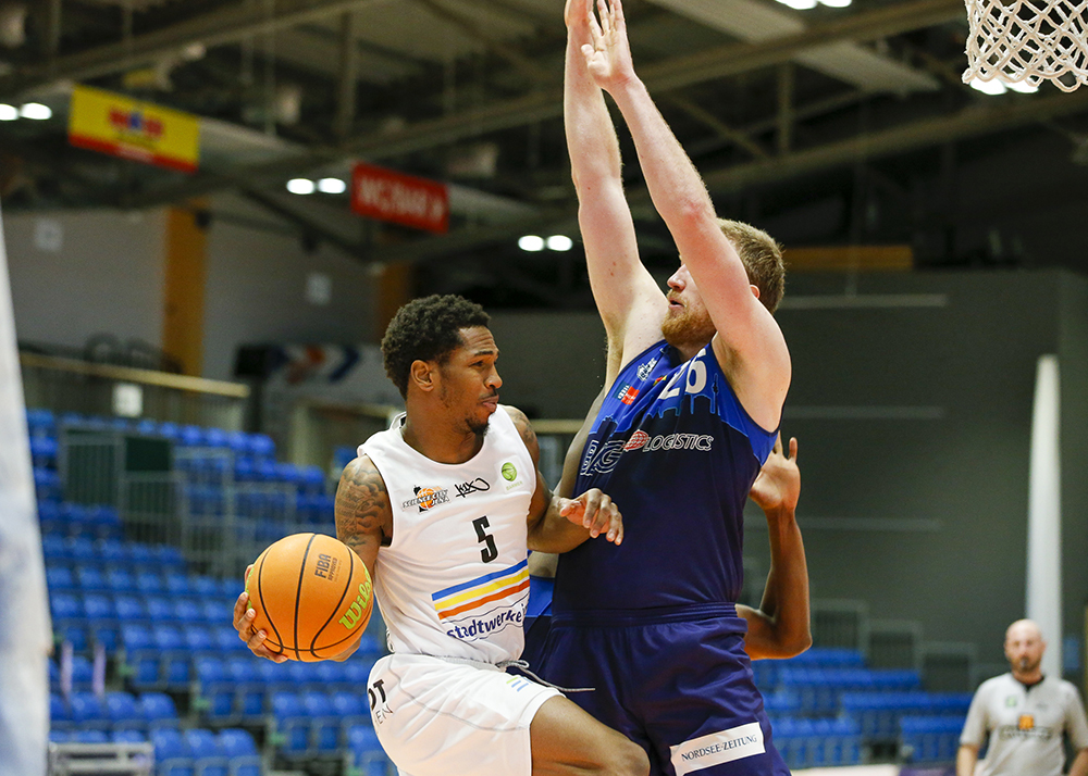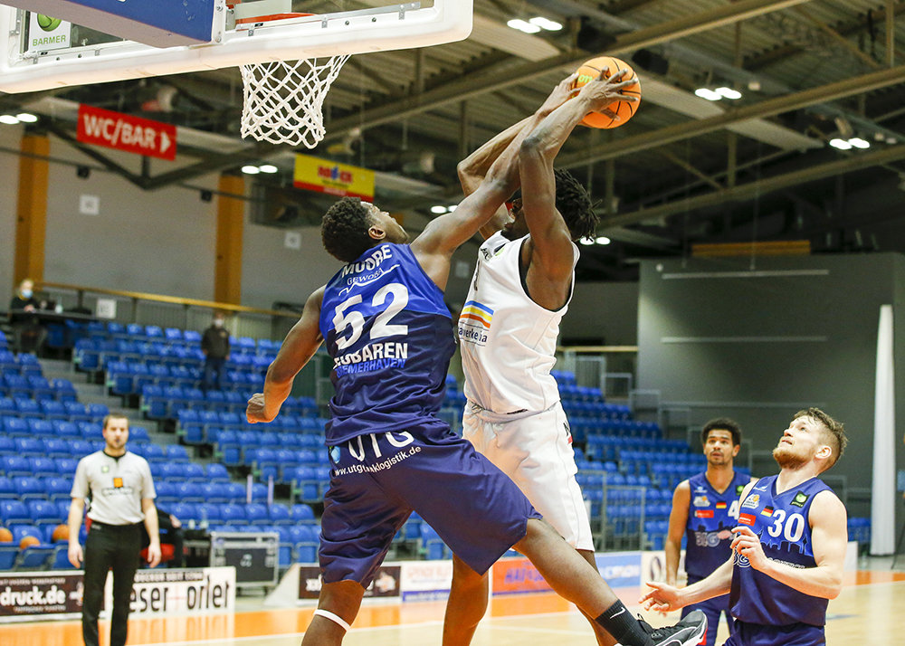 Die zweiten 10 Minuten begannen für die Hausherren mit 90 Sekunden ohne Punkte, in denen die Norddeutschen ihren Vorsprung auf 29:21 ausbauten. Acht Punkte Differenz waren es auch zur Halbzeit beim 48:40 für die Bremerhavener.