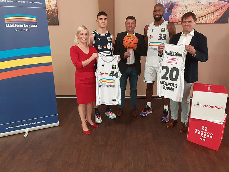 Jena. Neue Trikots, vertraute Partner: Die Basketballer von Medipolis SC Jena präsentierten am Freitag Stadtwerke-Jersey.