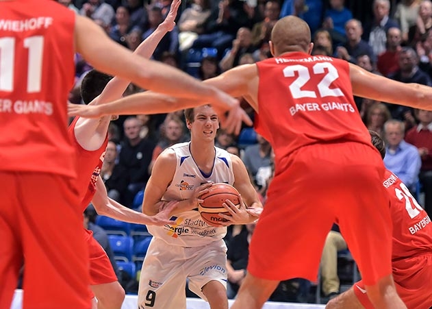 Jena. Die Basketballer von Science City Jena siegen am Samstagabend gegen Leverkusen mit 77:72.