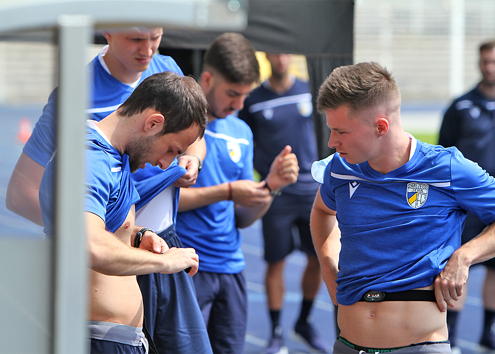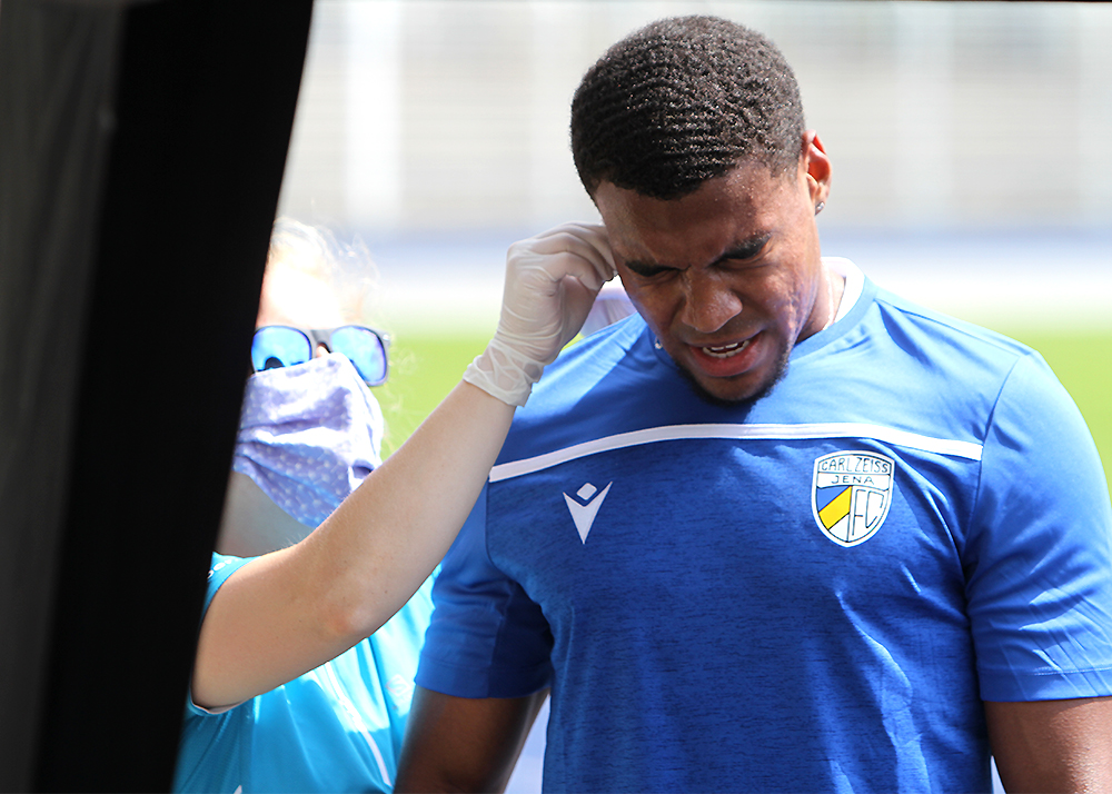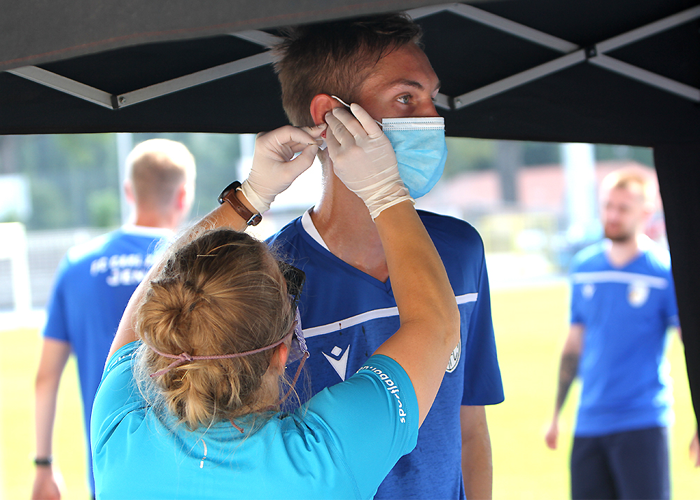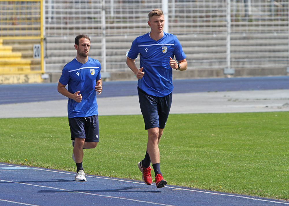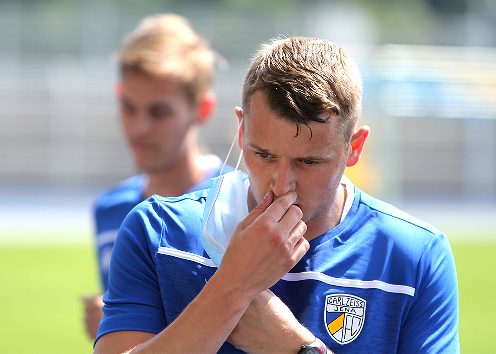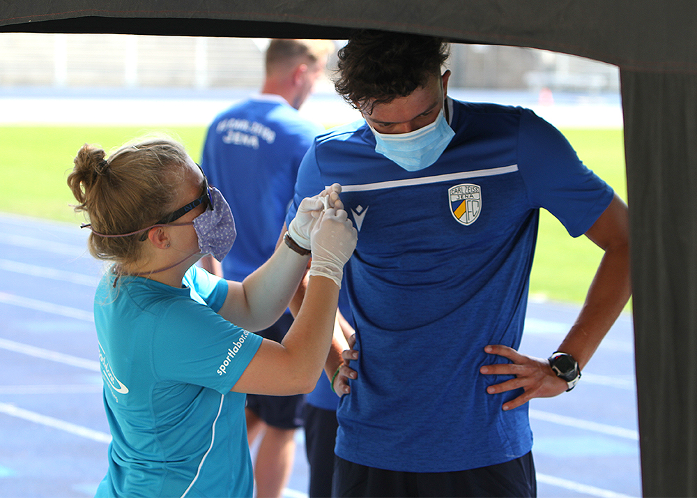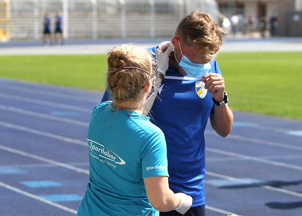 Laktattest zum Trainingsauftakt: Der erste offizielle Termin des FC Carl Zeiss Jena 2020/2021 stand am heutigen Montag mit dem neuen Cheftrainer Dirk Kunert im Ernst-Abbe-Sportfeld an. Fotos: © Baumgarten/JN