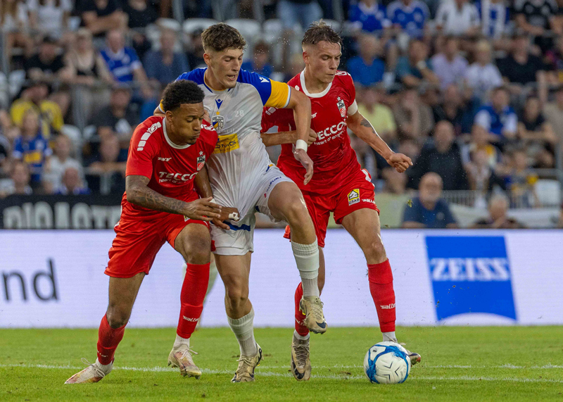 Jena. Der FC Carl Zeiss Jena gewinnt am Mittwochabend sein Heimspiel gegen den FC Rot-Weiß Erfurt mit 5:1 (2:1).