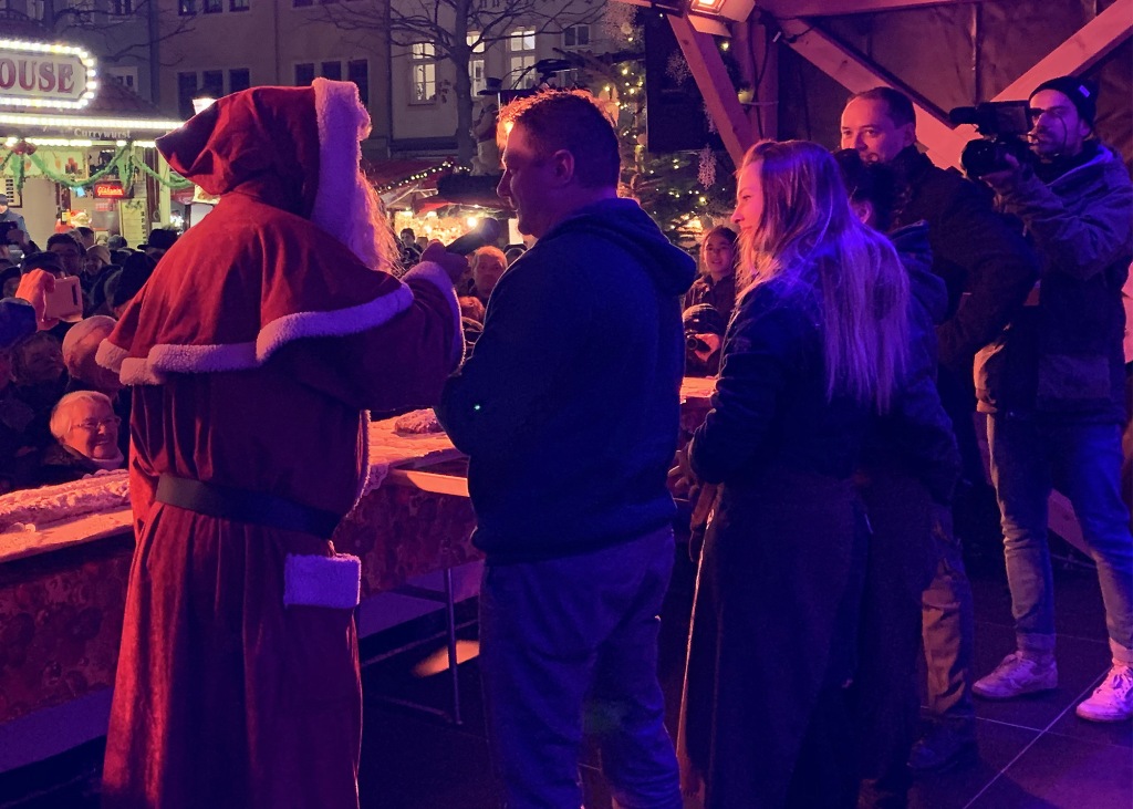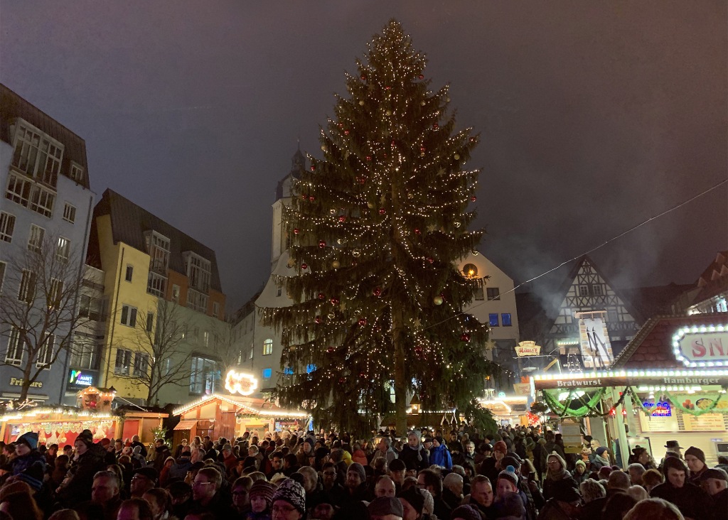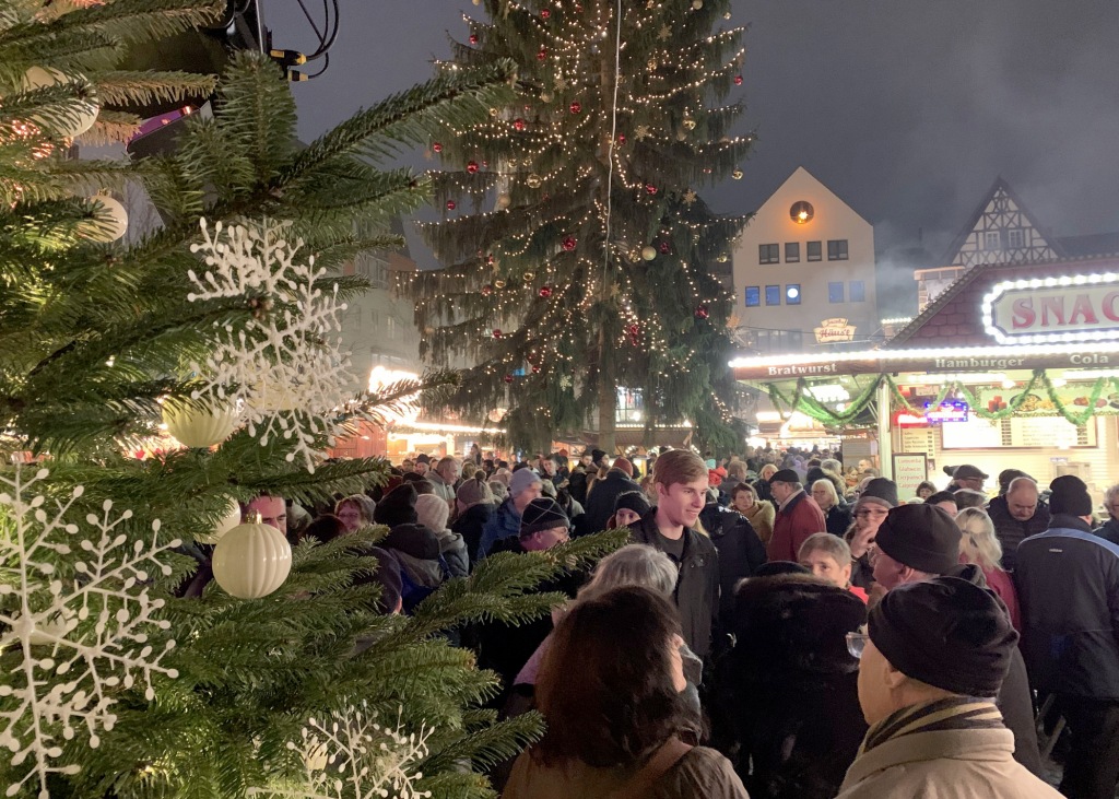 Der Jenaer Weihnachtsmarkt 2019 wurde mit dem traditionellen Anschnitt des Riesenstollens am Montagabend eröffnet. 100 Händler, Kulturprogramm, Rummel, Turmblasen und Tombola erwarten bis 22. Dezember die Besucher.