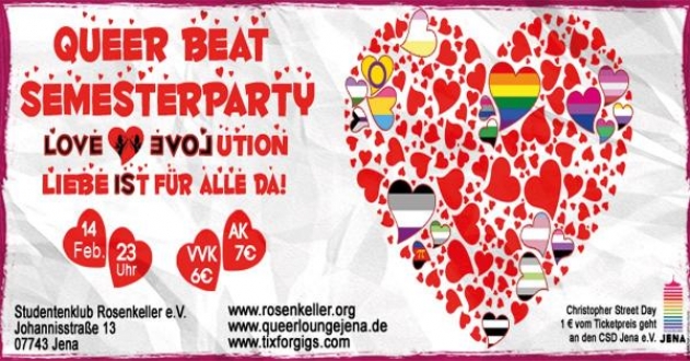 Geschrieben am 24. Juli 2017. Veröffentlicht in K2-Kategorie Veranstaltungen. QueerBeat Semesterparty - 14.02.2020 Rosenkeller Jena weitere Infos..... Aufrufe: 265 Zurück Weiter
