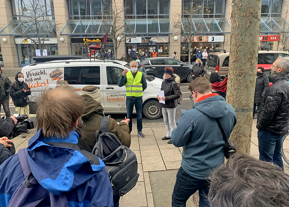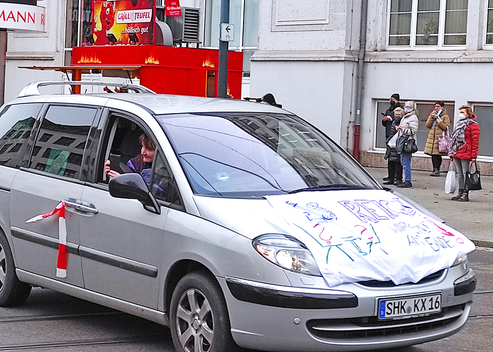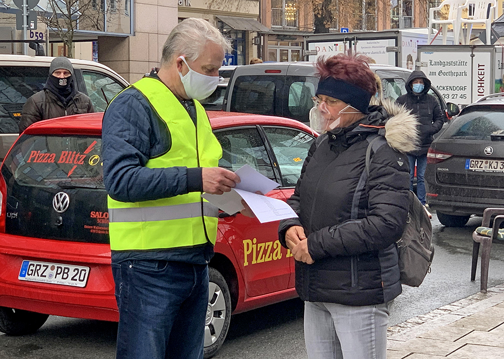 Im Leutragraben schließlich übergab Rudolf Kornhuber, Initiator des Autokorsos, eine Petition an die Landtagsabgeordnete Ute Bergner (Mitglied der FDP-Fraktion), in der eine Öffnungsstrategie für die Gastronomie und Kleinbetriebe sowie unbürokratischere Hilfen gefordert werden.