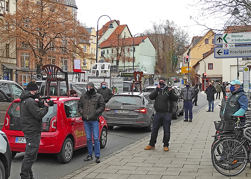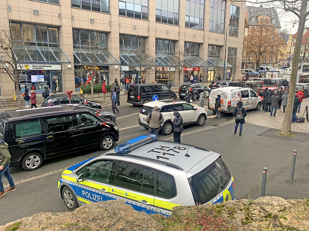 Jenas Oberbürgermeister Thomas Nitzsche blieb der Veranstaltung derweil wie gestern angekündigt fern. Die Stadtverwaltung sowie die Initiative Innenstadt befürchteten, der Autokorso könne von Corona-Leugnern und Querdenkern unterwandert werden.
