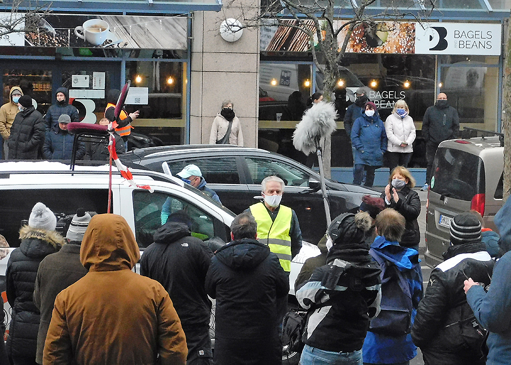 Wegen ausbleibender November- und Dezemberhilfen hätten bereits alle Tänzerinnen entlassen werden müssen, sagt er, lediglich das Sekretariat sei in Kurzarbeit geschickt worden. Er nimmt am Protest teil, um eine schnellere und unbürokratischere Auszahlung zu fordern.