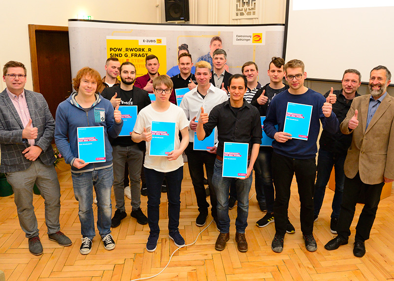 Für insgesamt 22 junge Männer (nicht alle im Bild) öffnen sich mit ihren Gesellenbriefen die Türen in die Fachbetriebe des Elektrohandwerks und damit Richtung Zukunft.