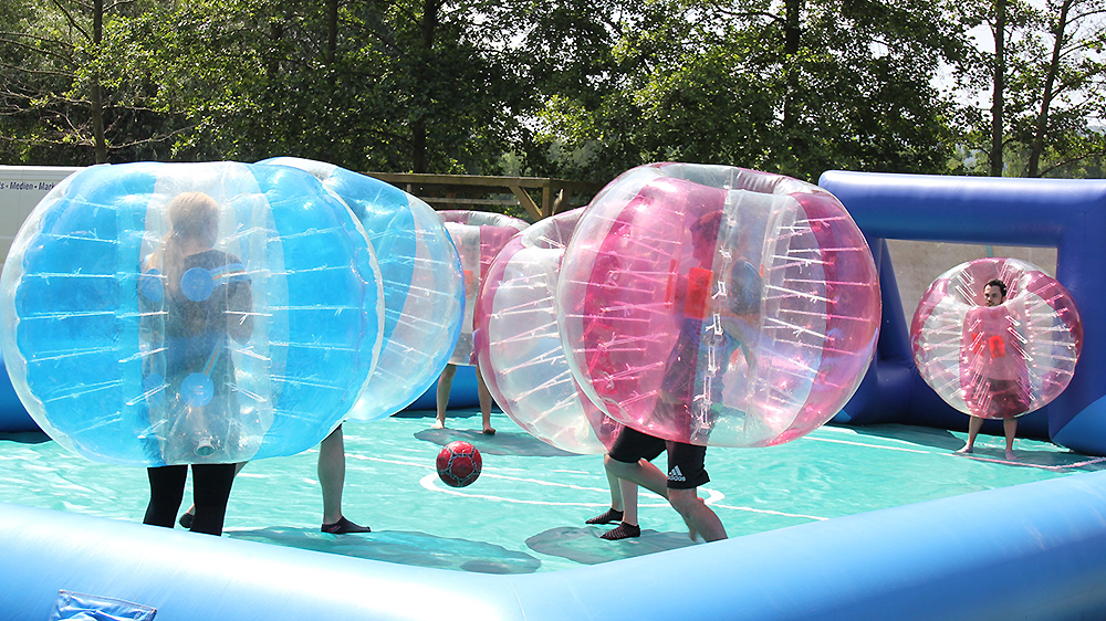 Menschliches Tischfußball war eines der Angebote zum ersten Azubi-Fit-Tag der Stadtwerke Jena Gruppe. 110 Auszubildende aller Lehrjahre waren zu dem sportlich-aktiven Tag am Strandschleicher eingeladen.
