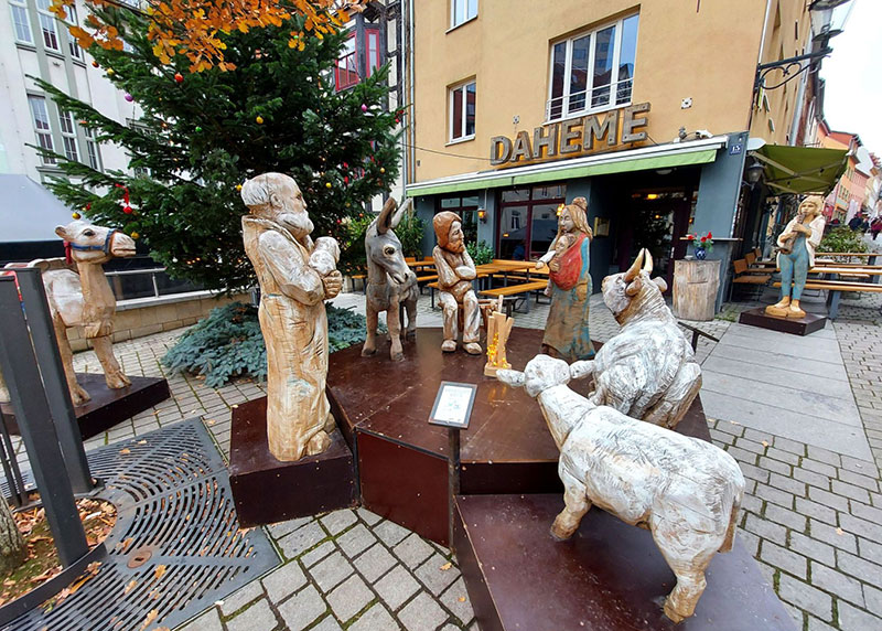 Die Weihnachtskrippe am Johannisplatz ist bis 02.01.2023 vor dem Wirtshaus Daheme zu bestaunen und wird auch in den kommenden Jahren um neue Figuren erweitert.
