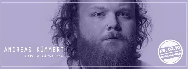 Geschrieben am 28. September 2015. Veröffentlicht in K2-Kategorie Veranstaltungen. LIVE: Andreas Kümmert (The Voice of Germany) - 02. Oktober 2015 • 20:00Uhr Kassablanca Jena weitere Infos ... Aufrufe: 269 Zurück Weiter