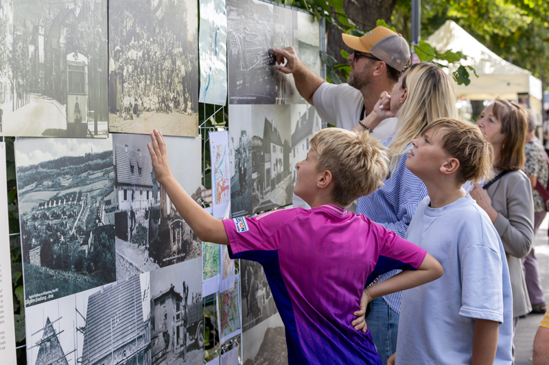 Besonders beliebt war die historische Fotowand, die mit eindrucksvollen Bildern die Geschichte des Stadtteils lebendig werden ließ.