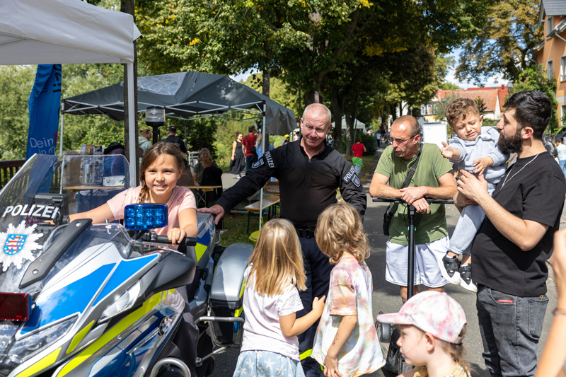 Kinder durften sich über einen Streifenwagen und das Polizeimotorrad von Kontaktbereichsbeamten Jan Alberts freuen – ein echtes Erlebnis zum Anfassen.