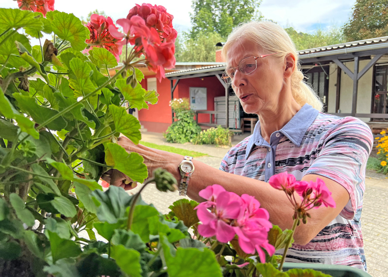 Die 73-jährige Gisela Stadtelmann übernahm die Patenschaft über die Blumen am Vereinsheim.