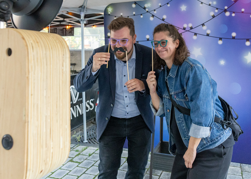 Citymanagerin Katja Jarmer und Kulturdezernent Johannes Schleußner probierten sich in der Fotobox.