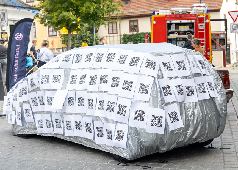 Mit einem in weißes Papier gehüllten Auto setzte sie ein originelles Zeichen – und verband die Aktion mit einem Gewinnspiel, bei dem das Fahrzeug tatsächlich verlost wird.