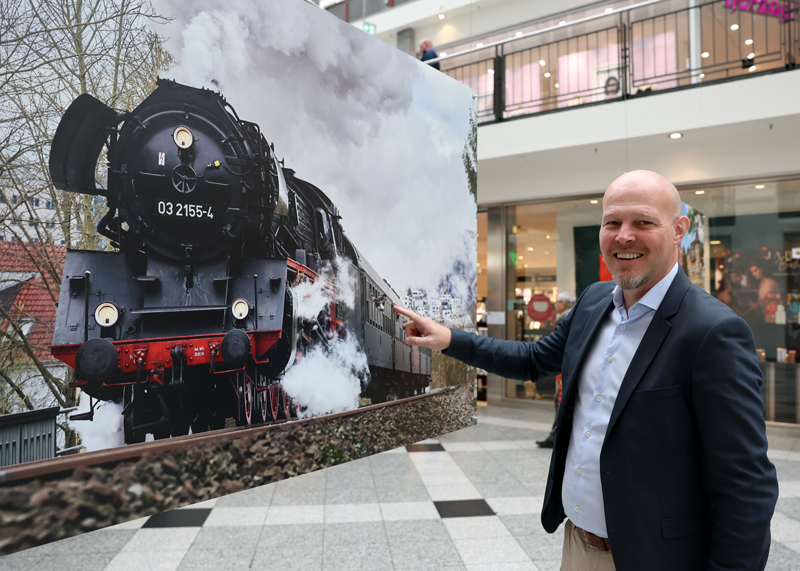 Centermanager Michael Holz zeigte sich begeistert von dem Dampflok-Motiv.