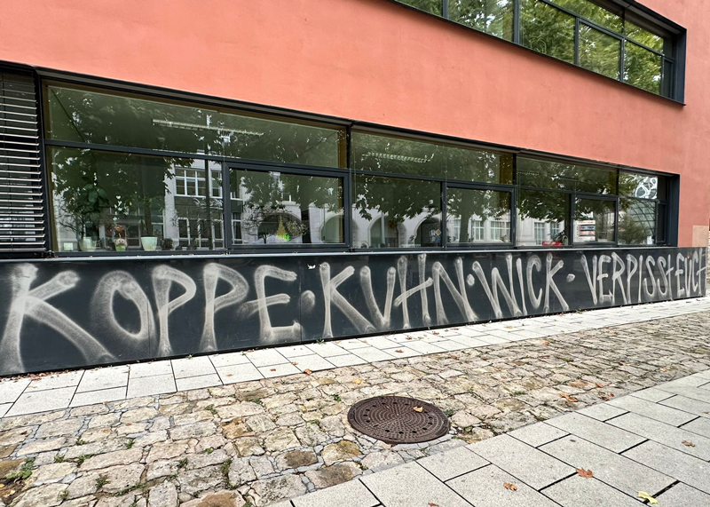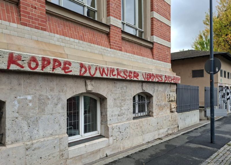 Neben Koppe richteten sich die Schmierereien auch gegen den Leiter des Ordnungsamts, Sebastian Wick, sowie gegen Andreas Kuhn, Geschäftsführer der Elf5 GmbH.