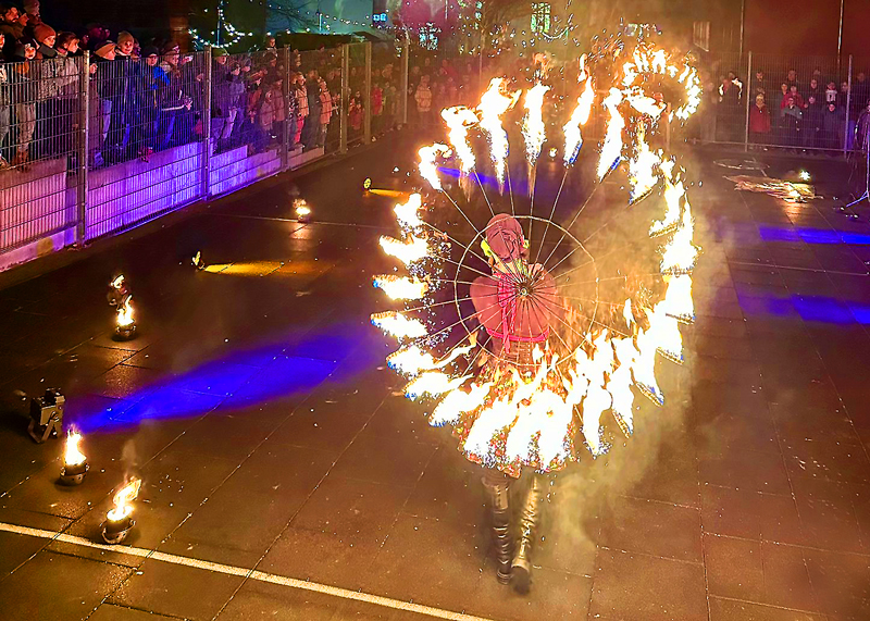 Sprühende Funken, fliegende Flammen und atemberaubende Choreografien.