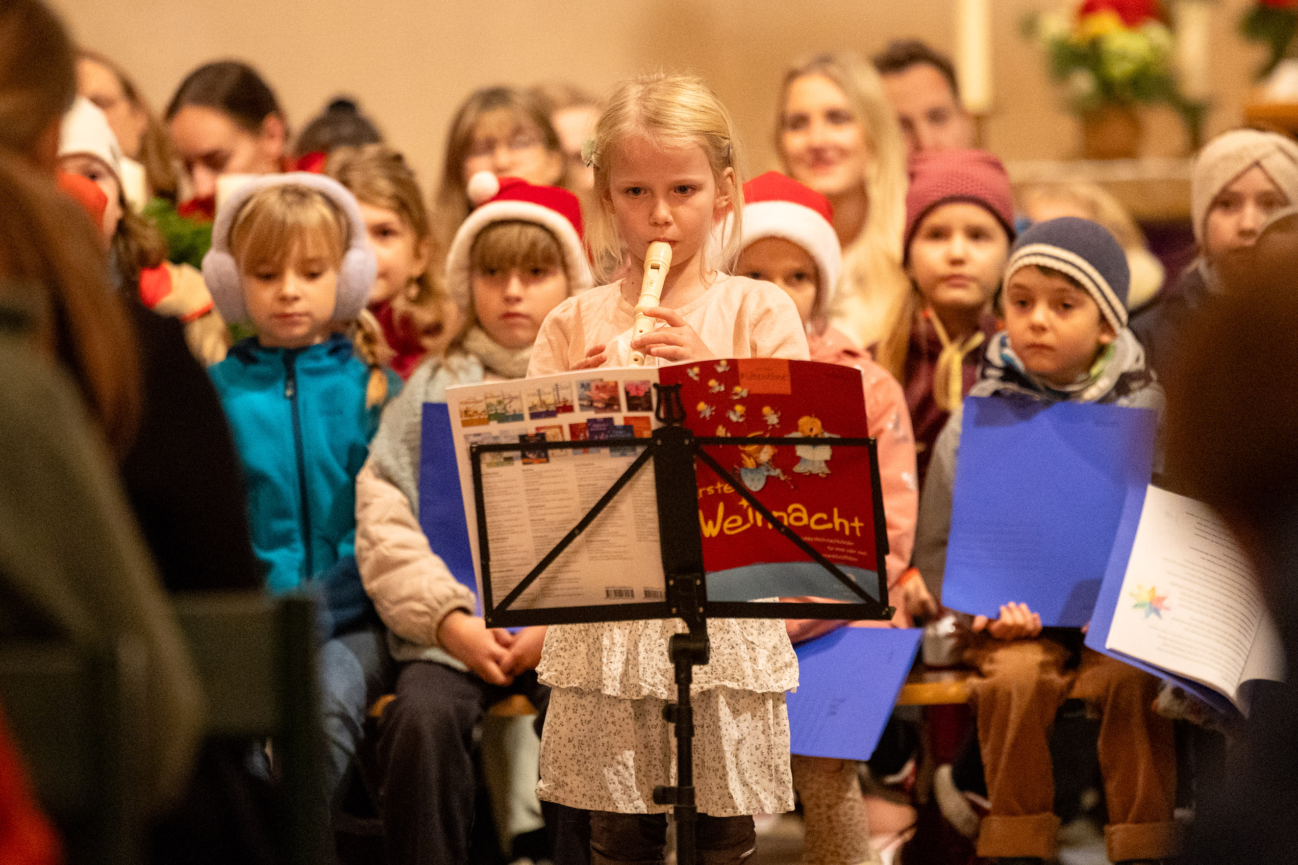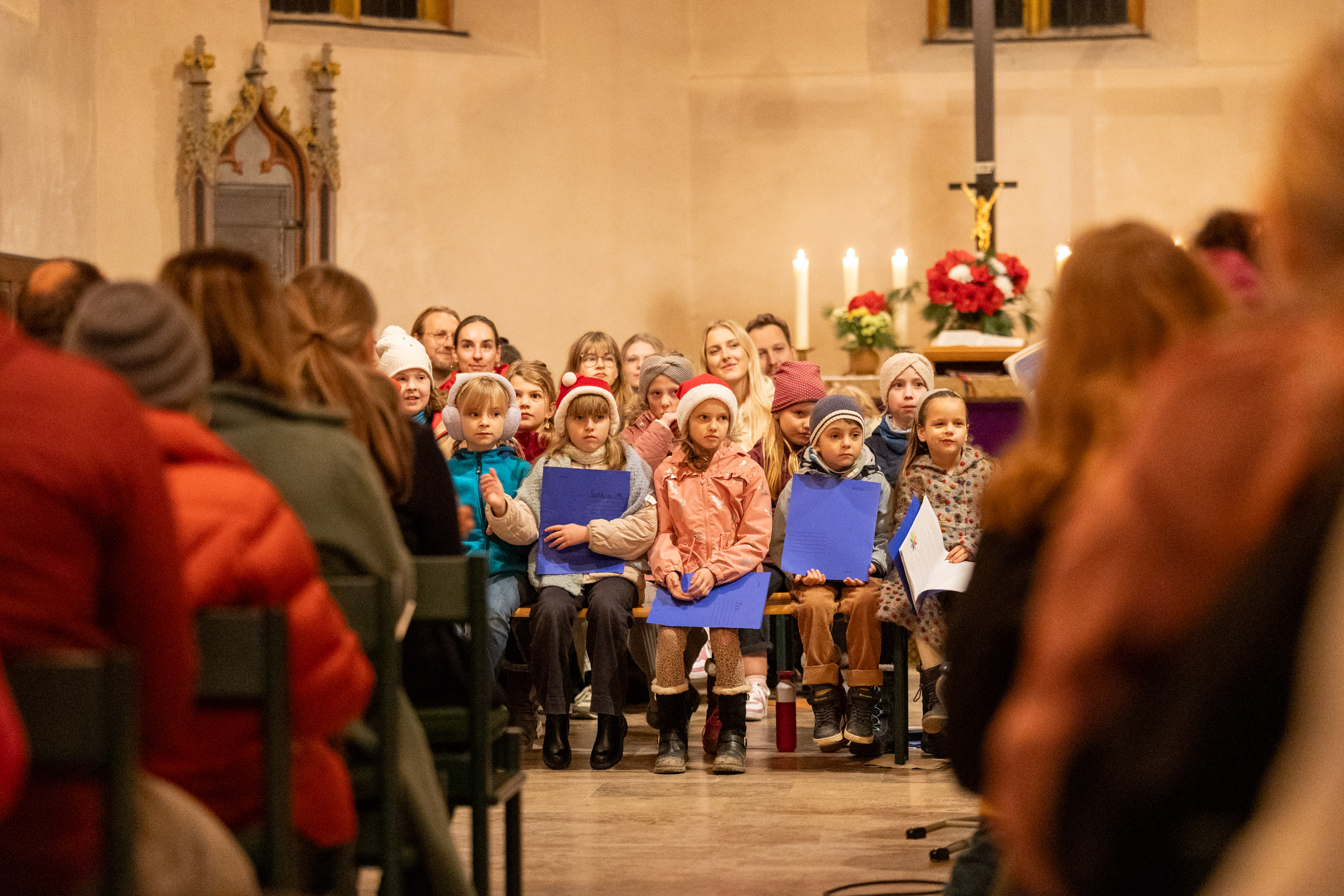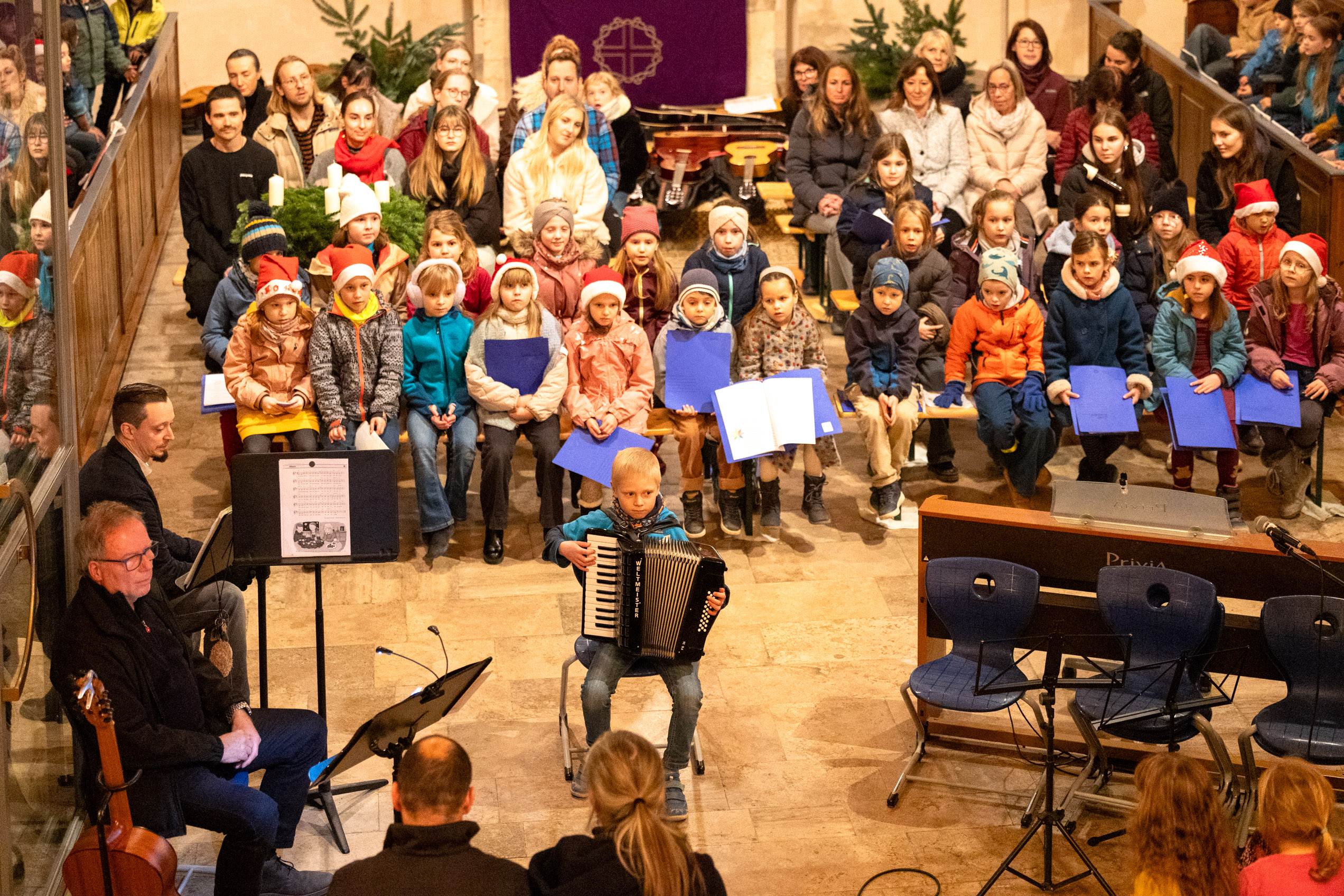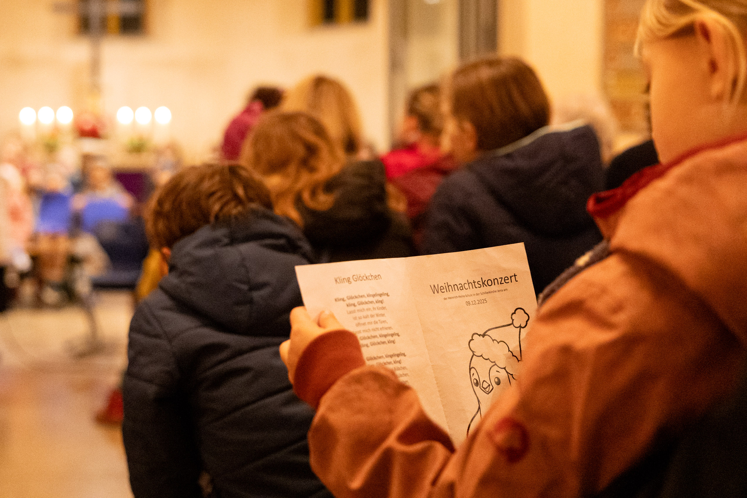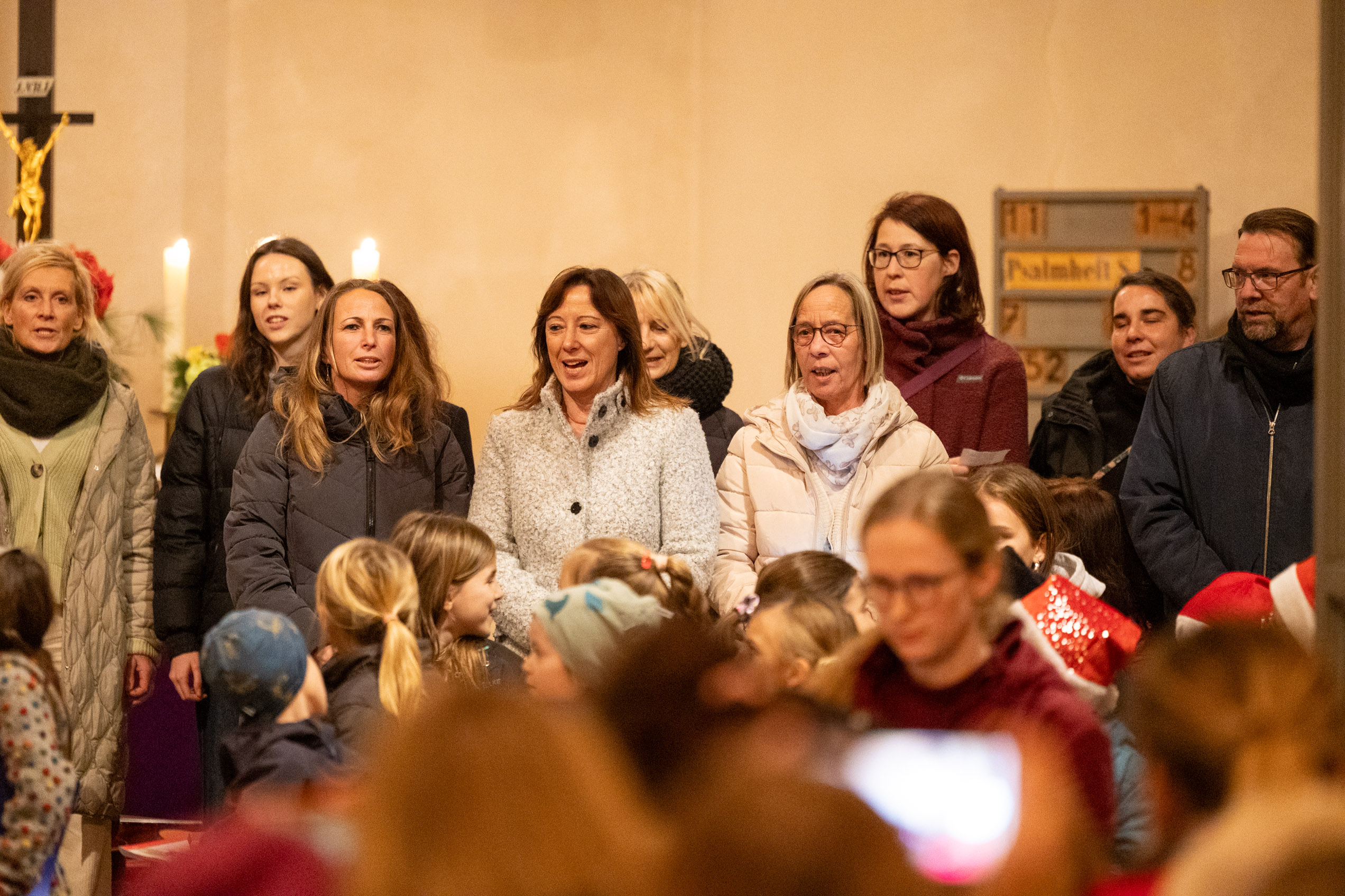 Zum Abschluss stimmten die Grundschüler gemeinsam mit dem Publikum das fröhliche „Kling, Glöckchen, klingelingeling“ an – ein Moment, der die ganze Kirche zum Klingen brachte.