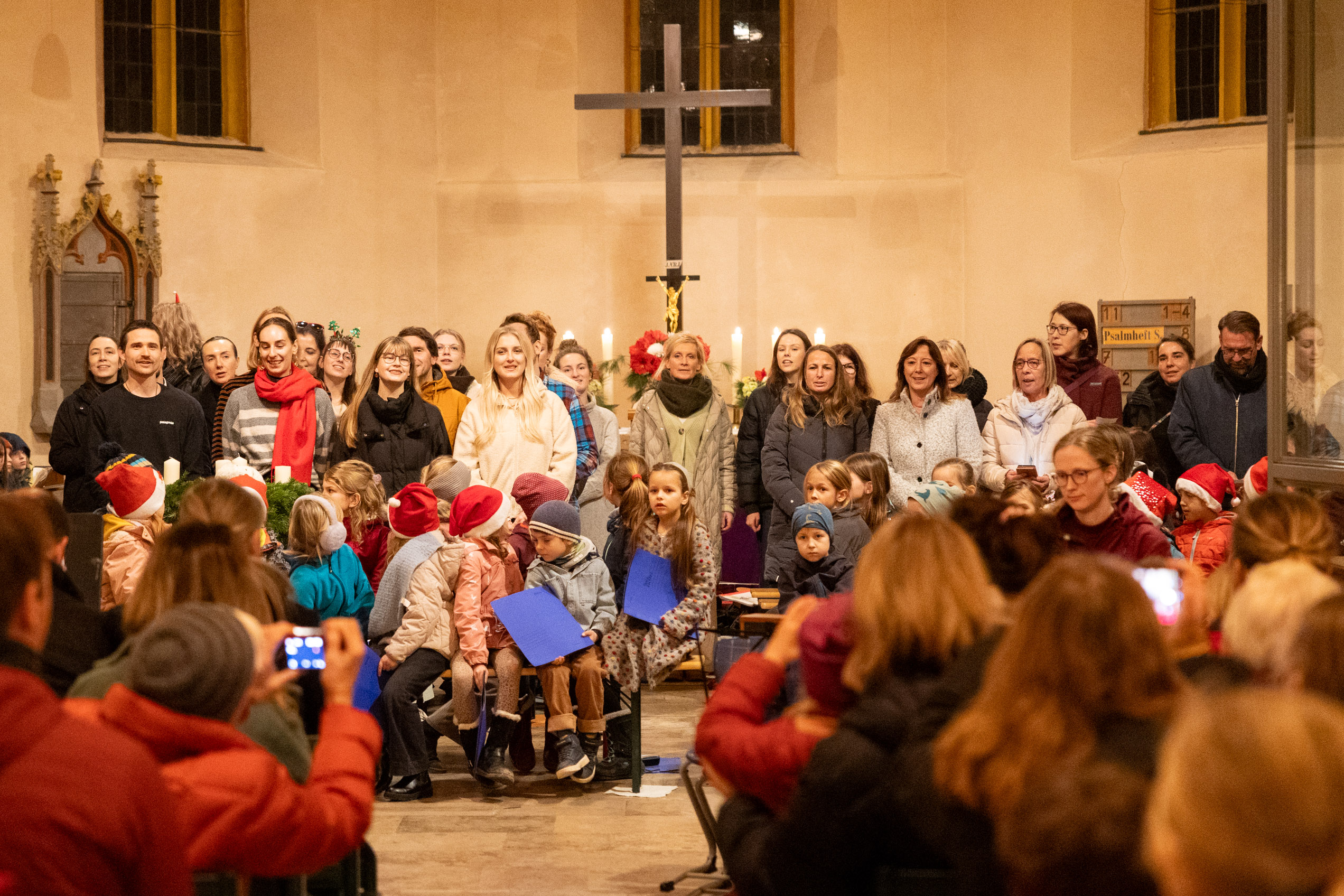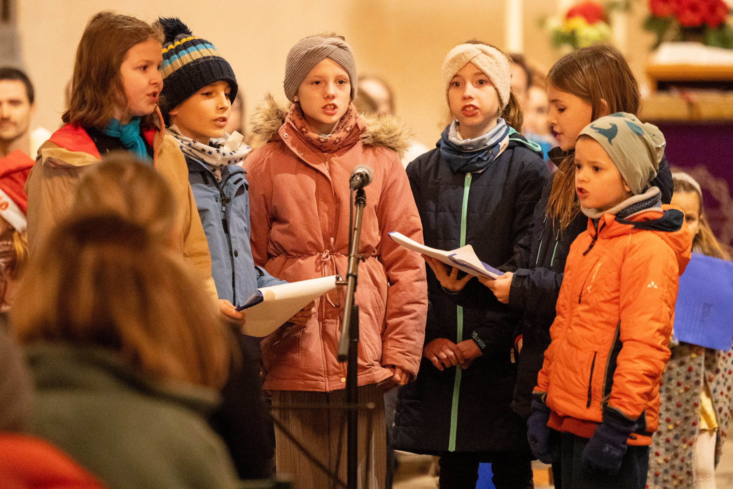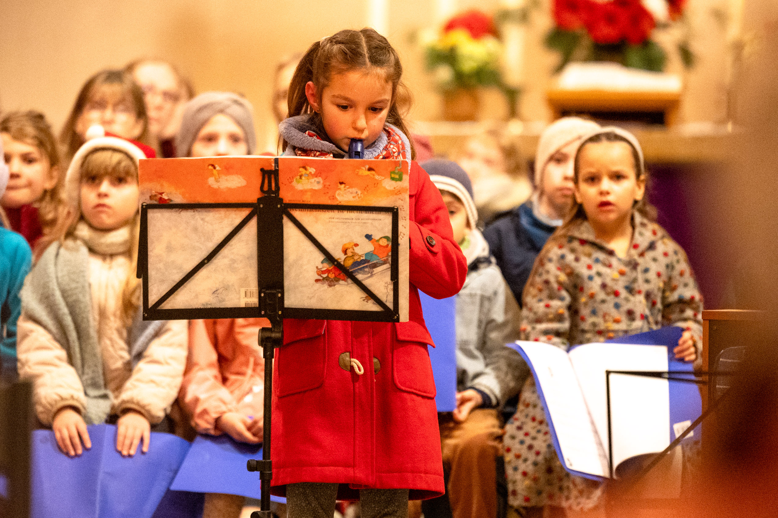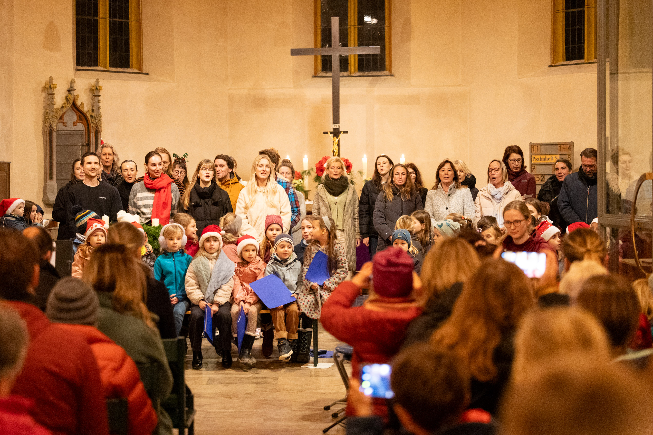 Zum Abschluss stimmten die Grundschüler gemeinsam mit dem Publikum das fröhliche „Kling, Glöckchen, klingelingeling“ an – ein Moment, der die ganze Kirche zum Klingen brachte.