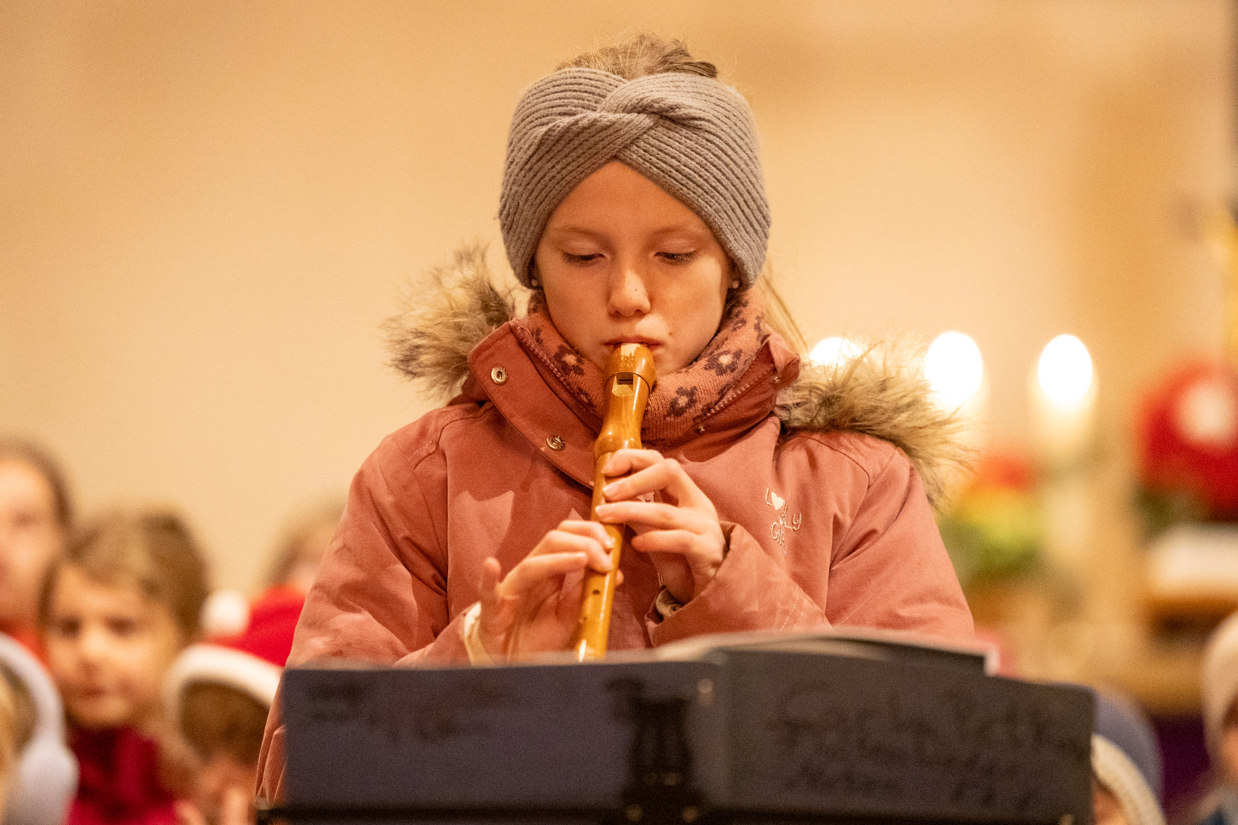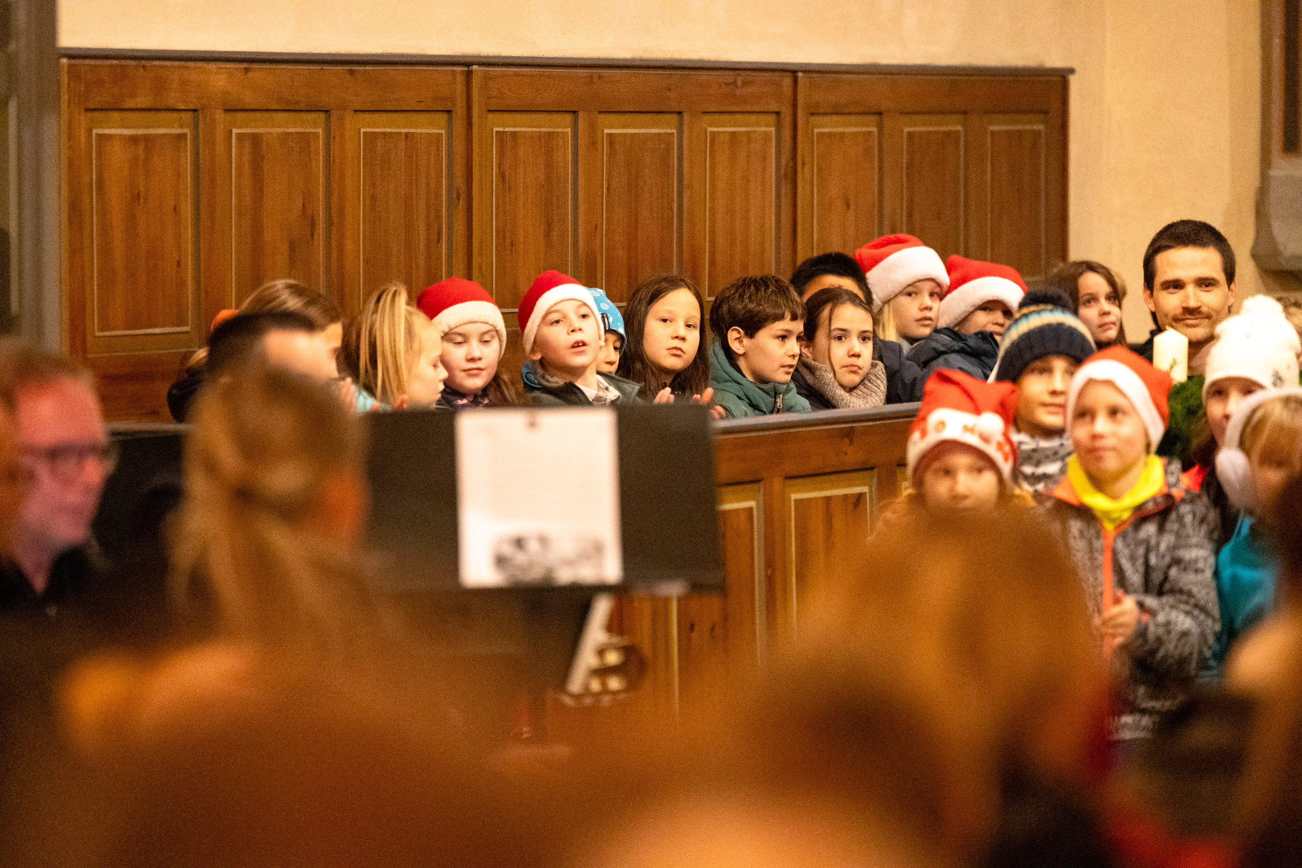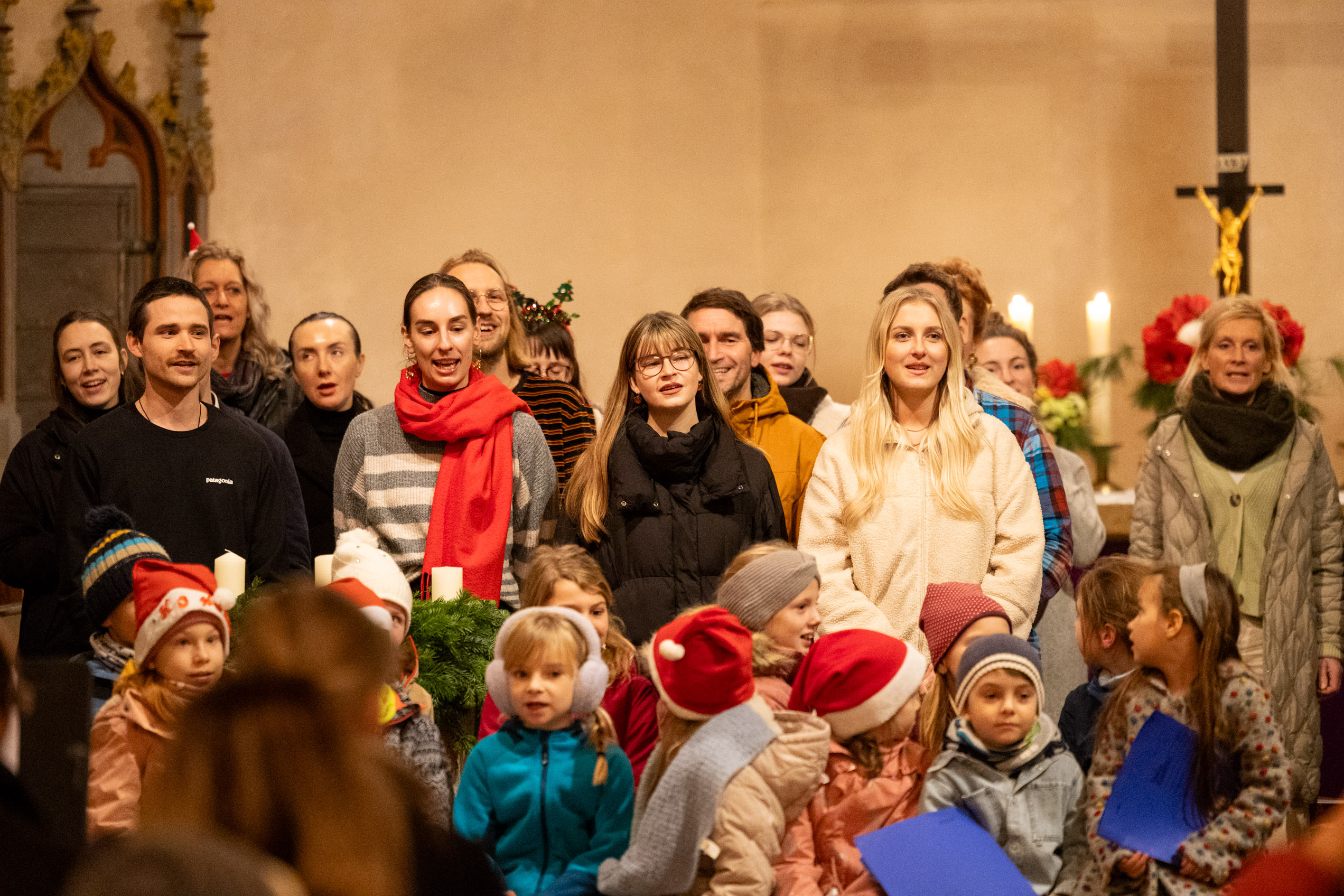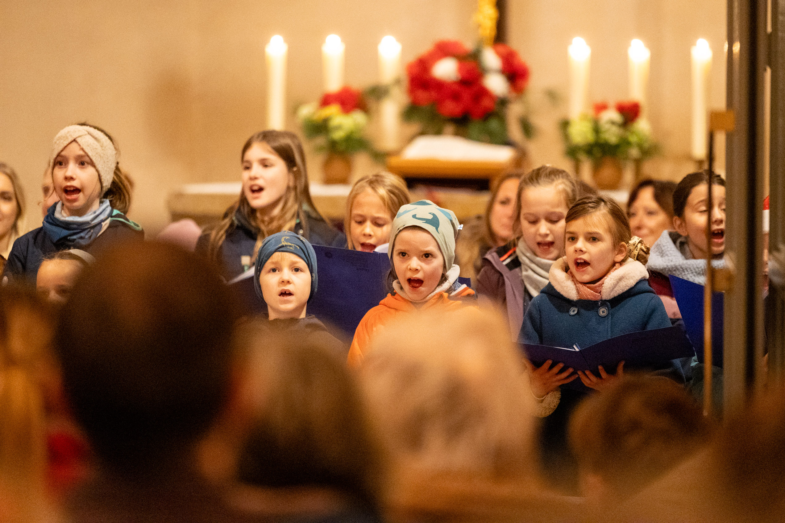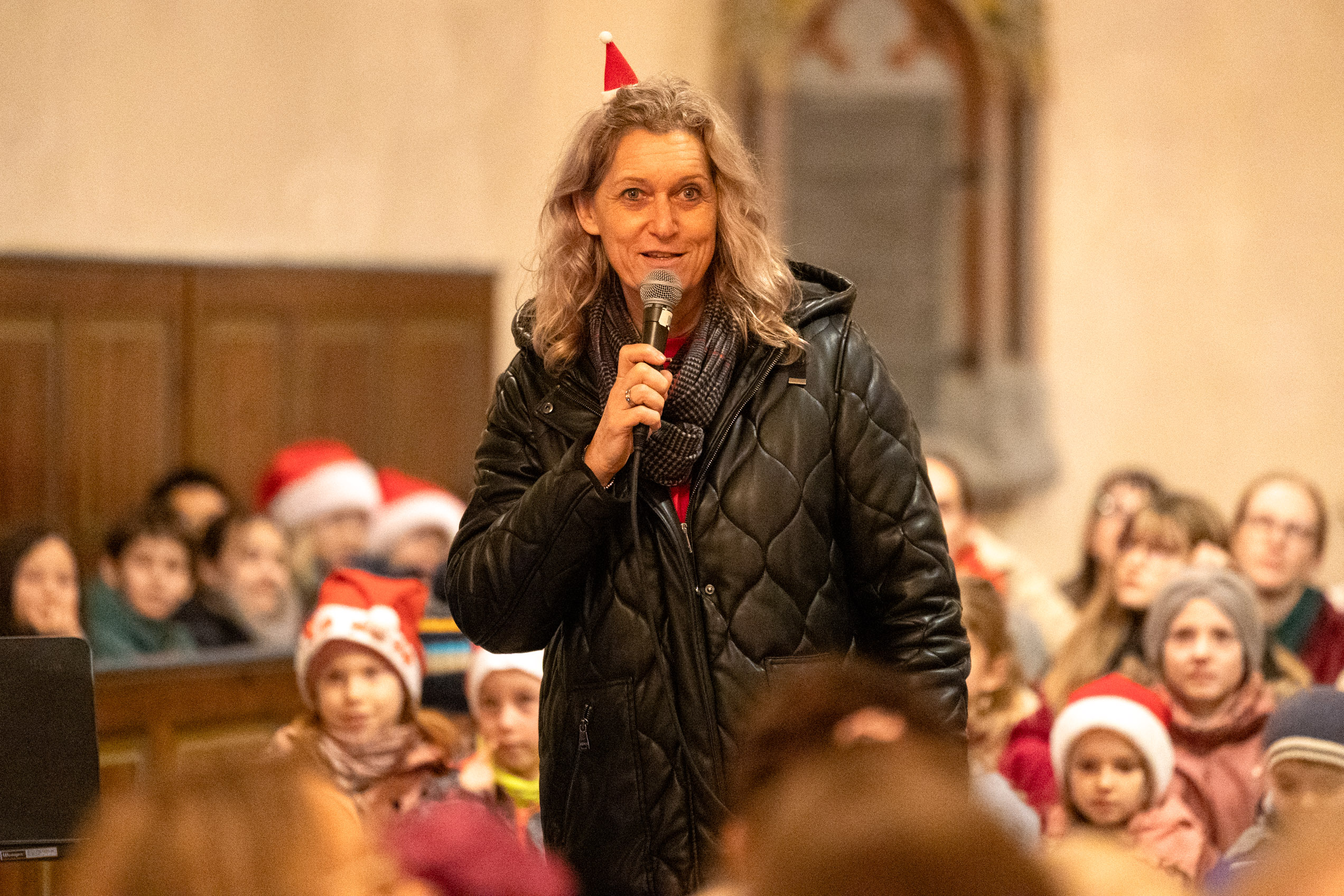 Zum Abschluss stimmten die Grundschüler gemeinsam mit dem Publikum das fröhliche „Kling, Glöckchen, klingelingeling“ an – ein Moment, der die ganze Kirche zum Klingen brachte.
