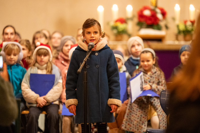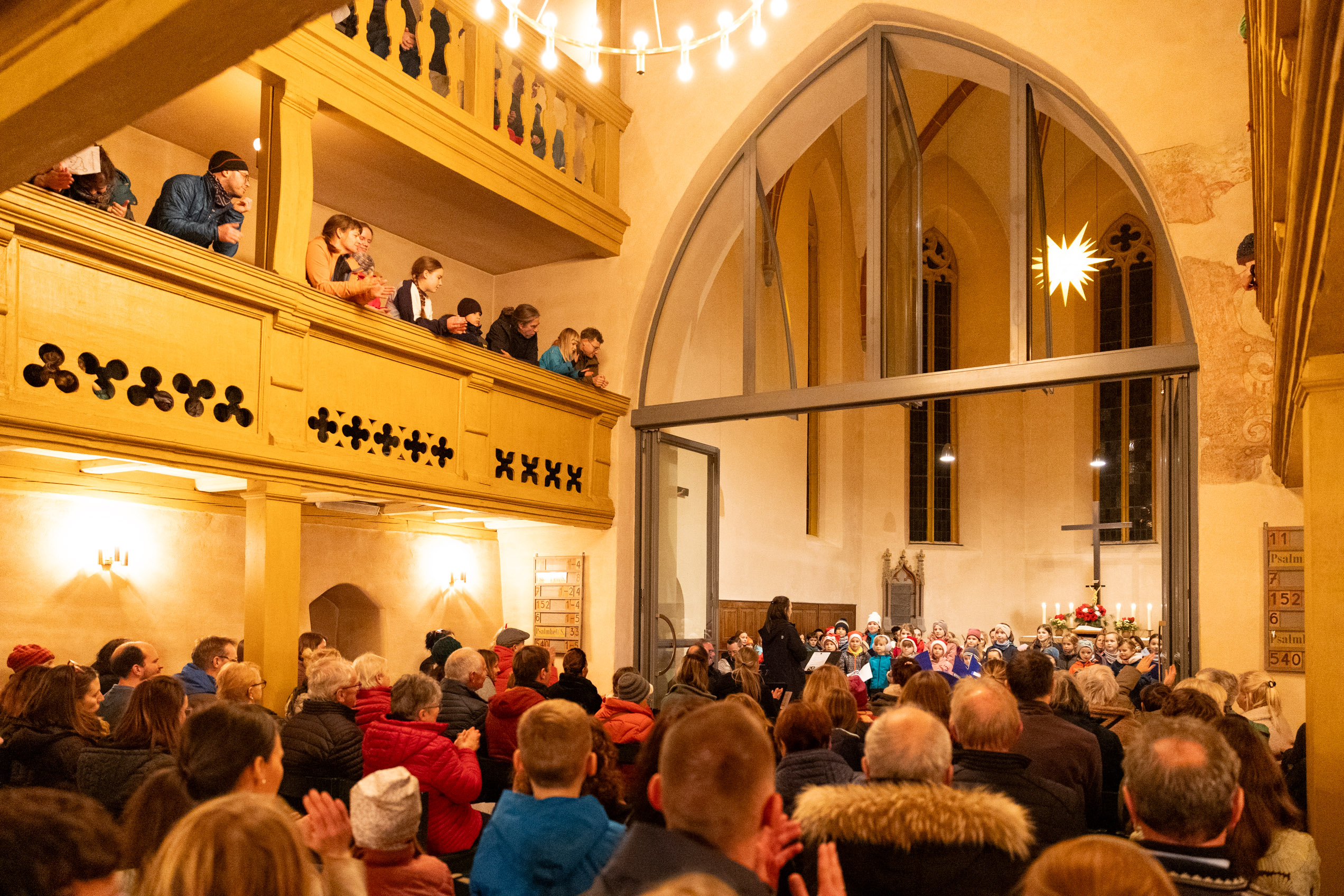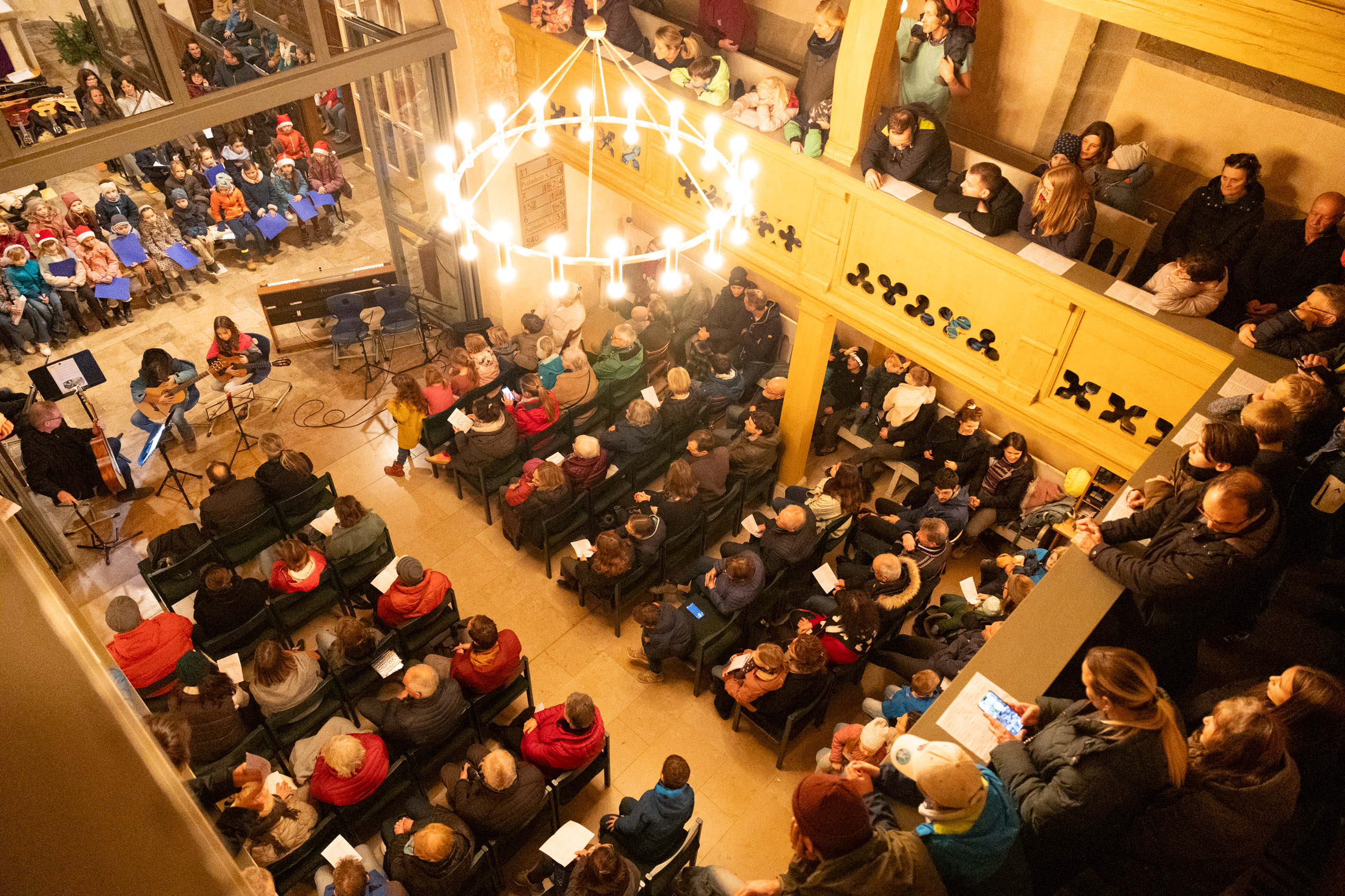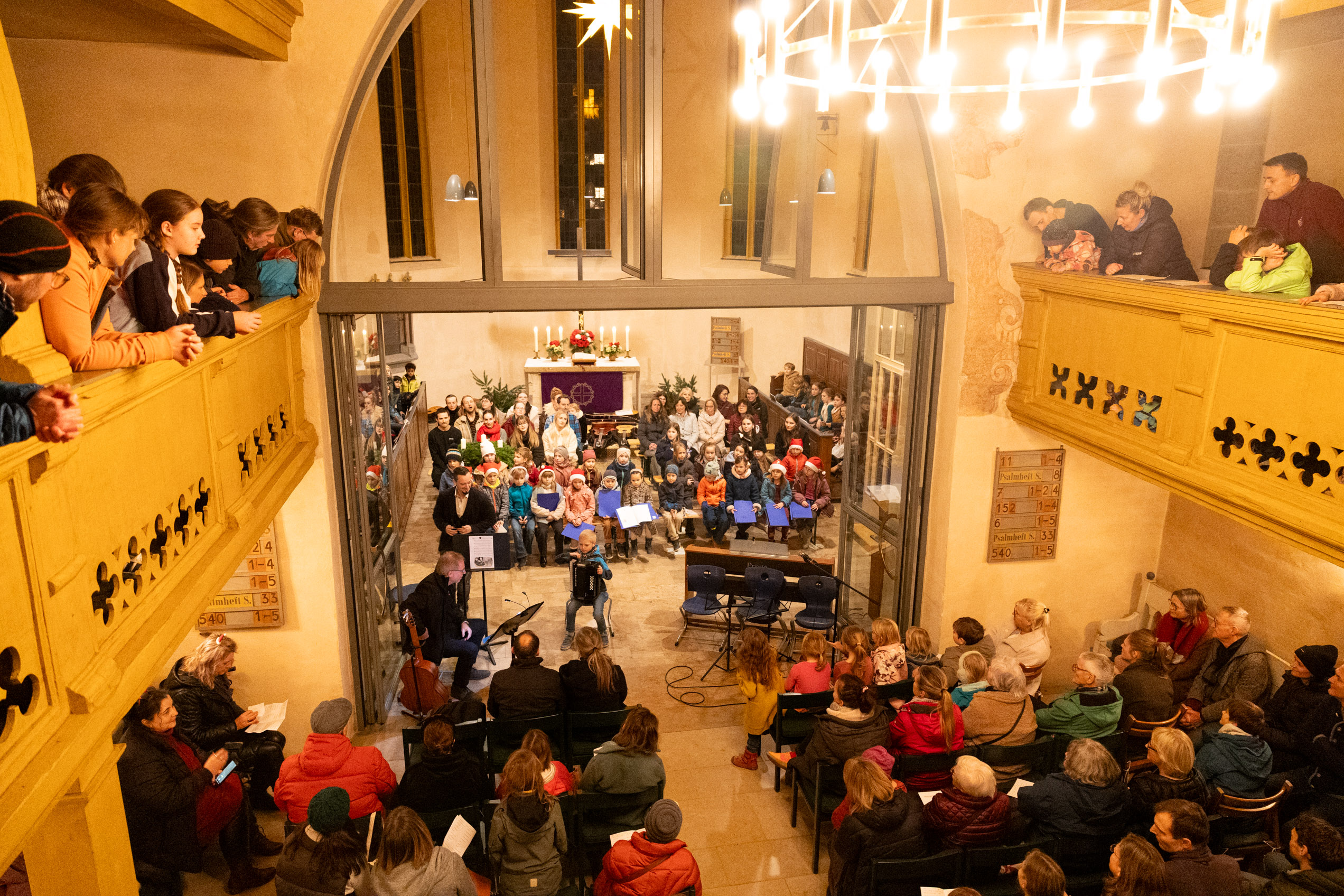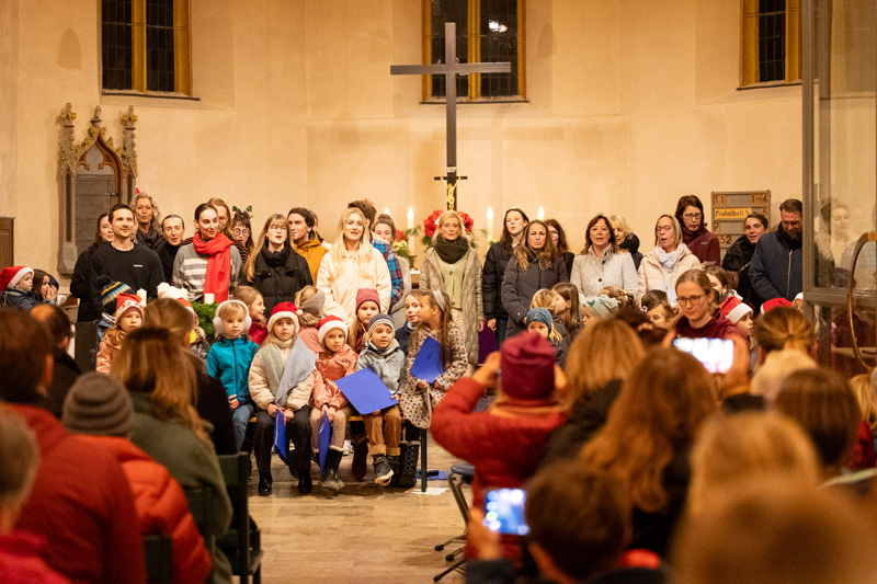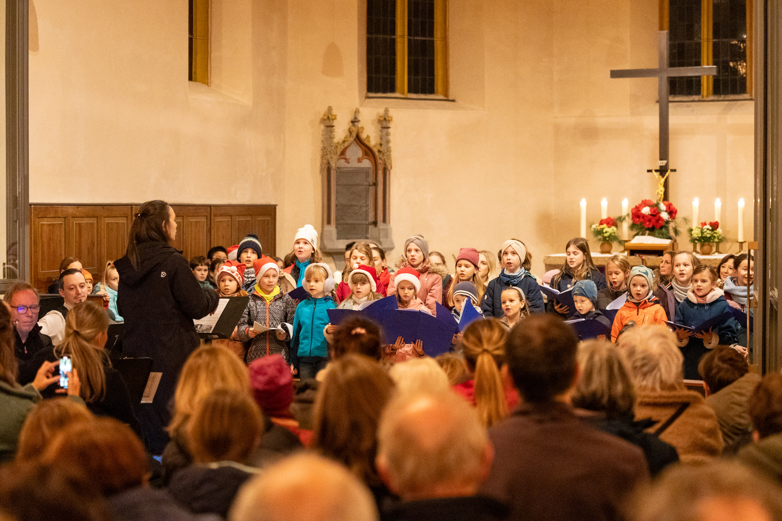Zum Abschluss stimmten die Grundschüler gemeinsam mit dem Publikum das fröhliche „Kling, Glöckchen, klingelingeling“ an – ein Moment, der die ganze Kirche zum Klingen brachte.