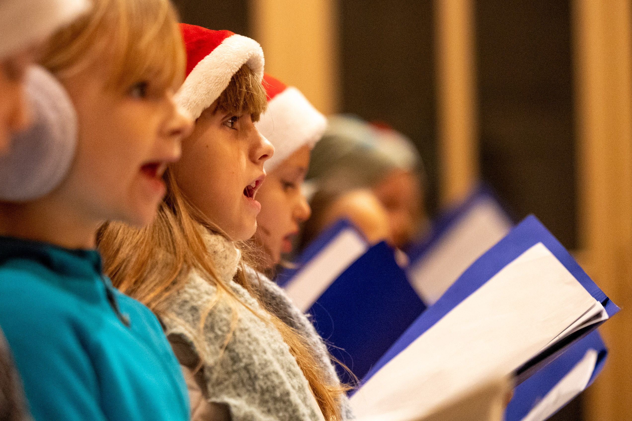 Auch die Pädagoginnen und Pädagogen der Grundschule übten ein Weihnachtslied ein.