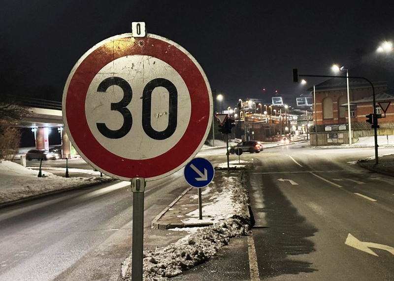 Tempo-30-Schilder wurden aufgestellt, um den nicht vorfahrtberechtigten Verkehrsteilnehmern das Einfädeln zu erleichtern.