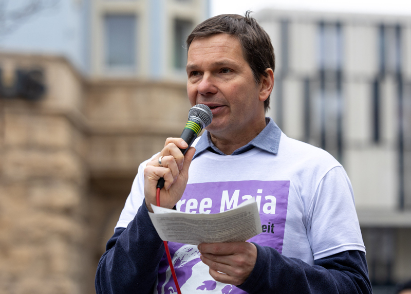 Unter den Demonstranten auch Wolfram Jarosch, der Vater von Maja T.