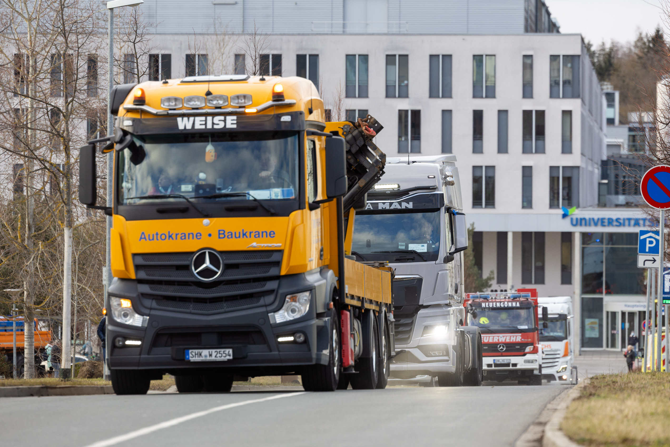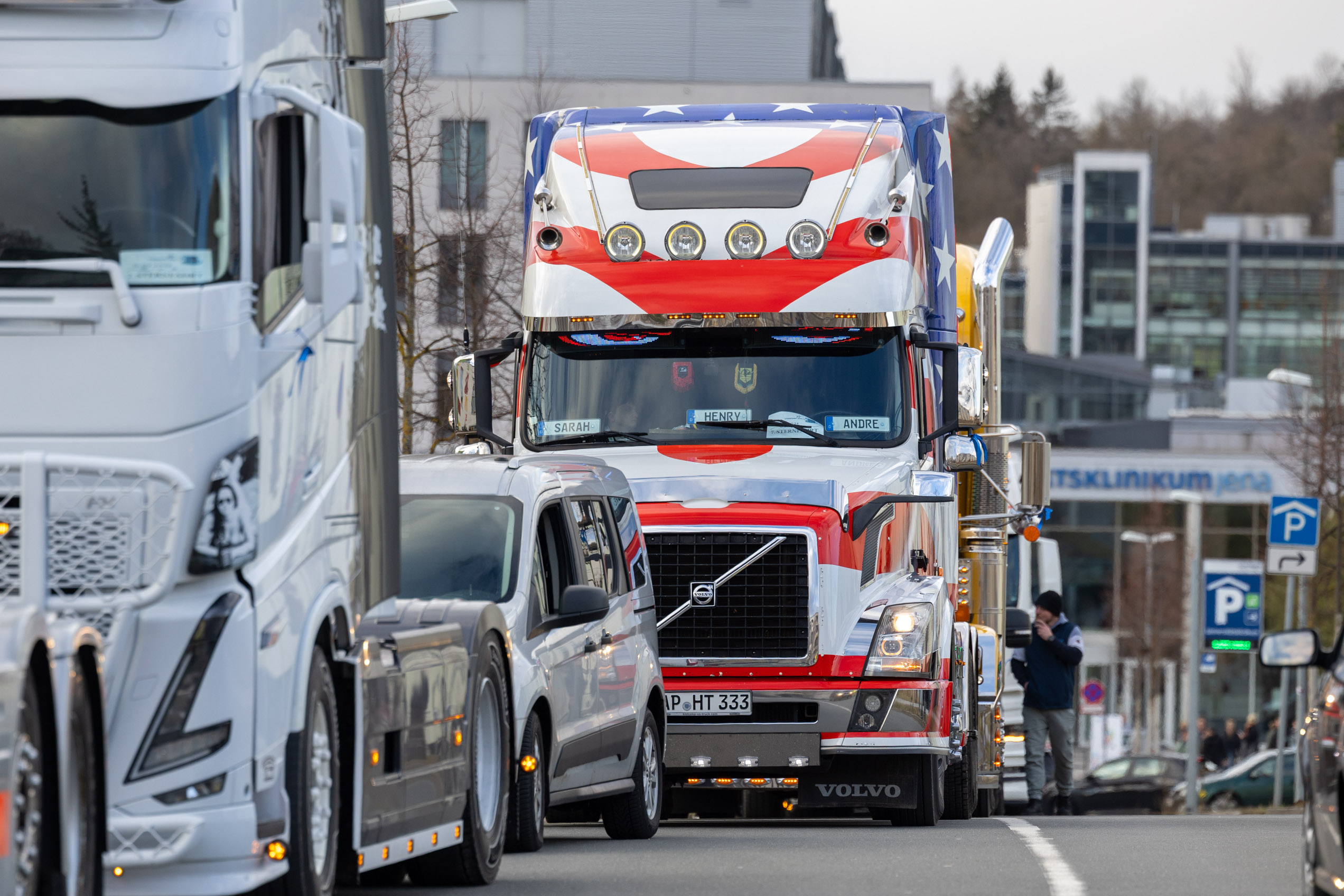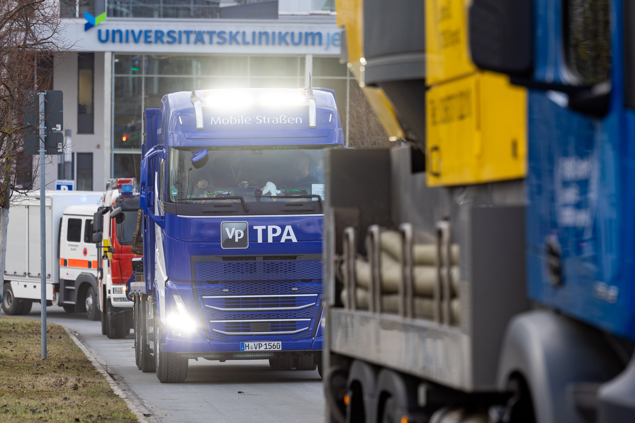 Rund 60 Lastwagen aus allen Teilen Deutschlands versammelten sich vor dem Universitätsklinikum, um schwerkranken Kindern und ihren Geschwistern einen Tag voller Freude zu schenken.