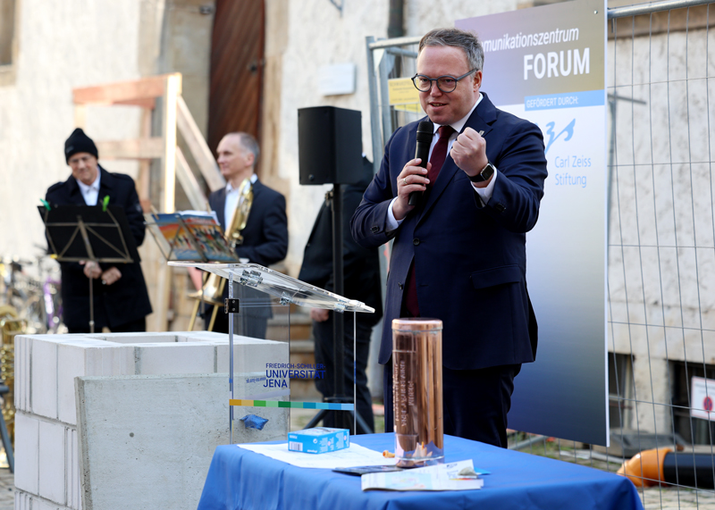 Jena. In feierlichem Rahmen wurde am heutigen Mittwoch der Grundstein für das neue Kommunikationszentrum FORUM der Universität Jena gelegt.