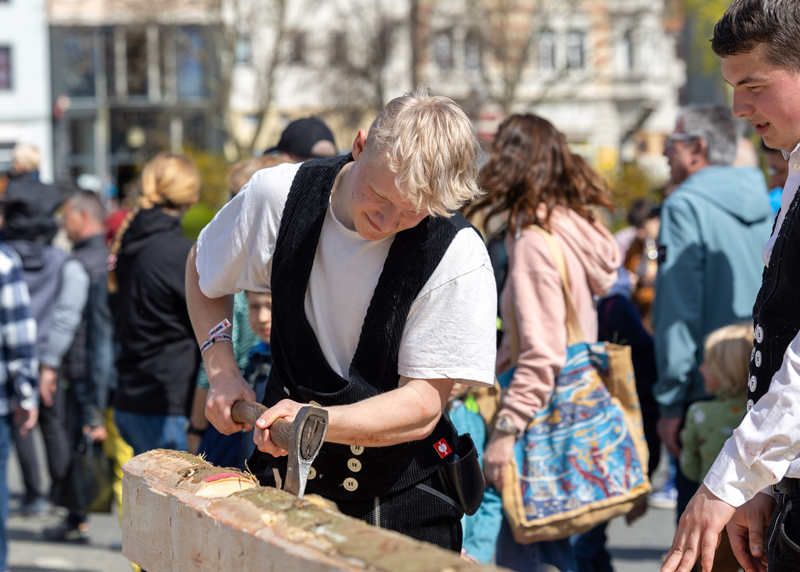 Die Großen und kleinen Besucher zeigten sich vor allem von den Darbietungen der Auszubildenden der Zimmerer-Innung Ostthüringen beeindruckt.