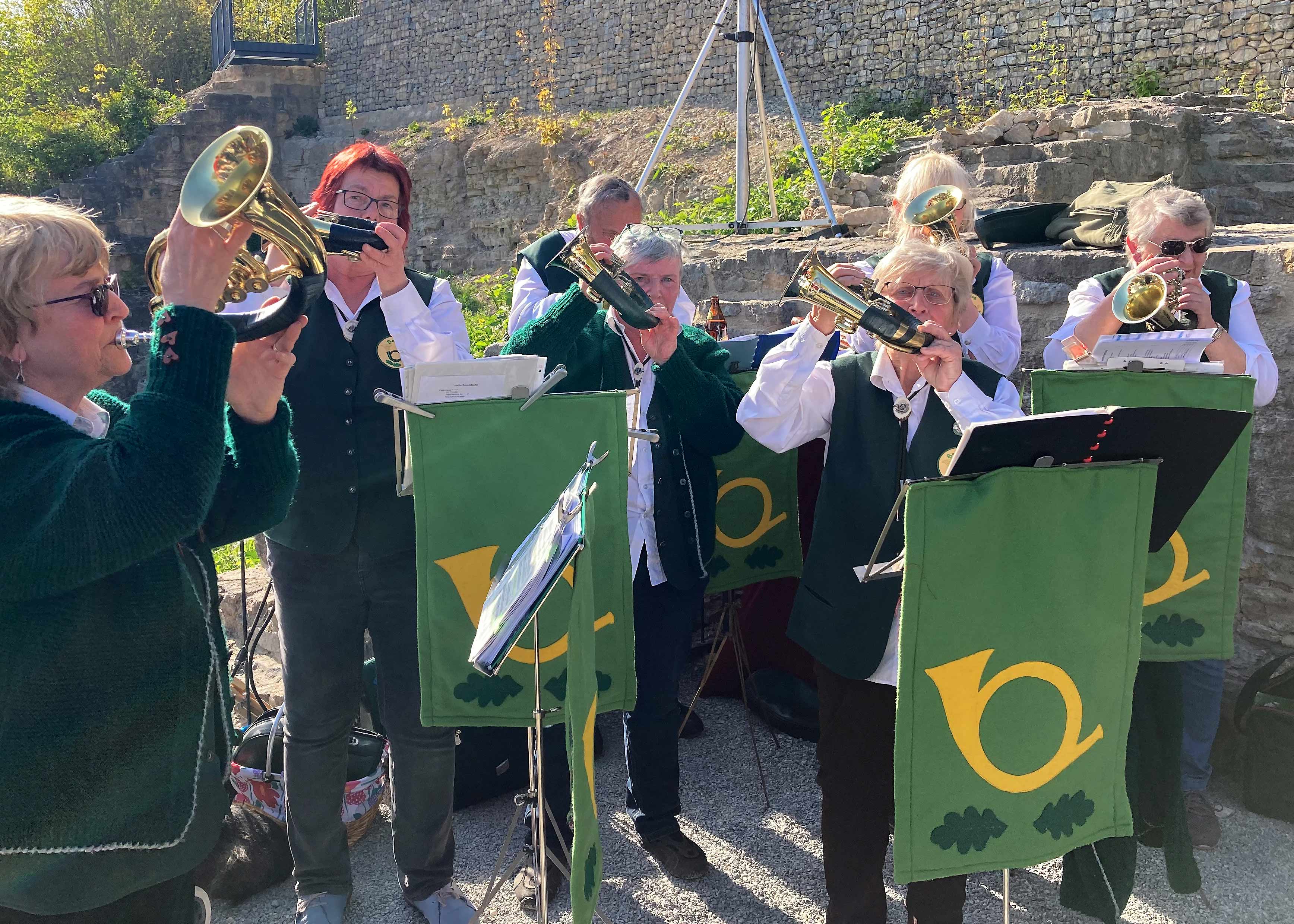Musikalisch begleitet von Bläsern wurde die Burg als Teil der europäischen Kulturroute „Transromanica“ neu eingeweiht.