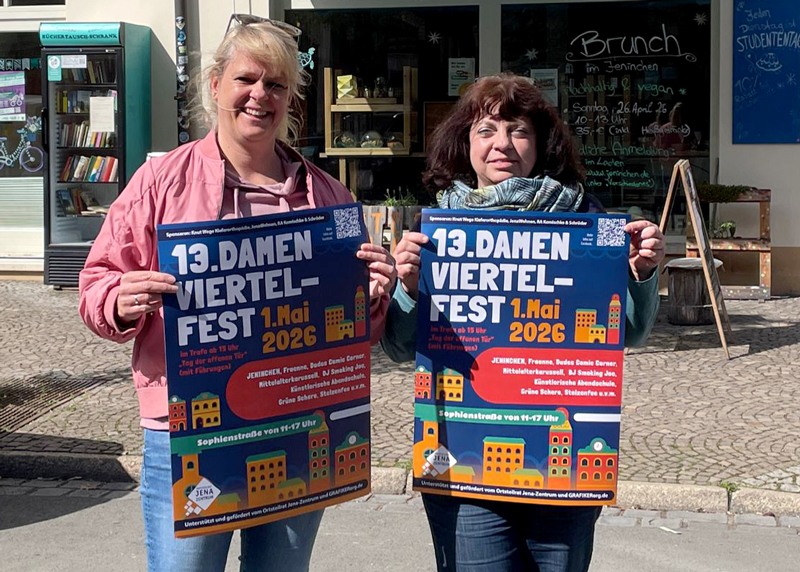 Von 11 bis 17 Uhr steigt in der Sophienstraße das 13. Damenviertelfest – bunt, laut, gemütlich und wie immer liebevoll organisiert von Anwohnenden, Gewerbetreibenden und dem Ortsteilrat Jena‑Zentrum.