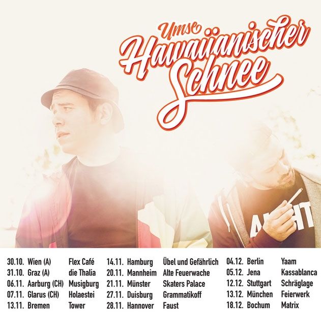 Geschrieben am 03. November 2015. Veröffentlicht in K2-Kategorie Veranstaltungen. Boomshakalaka LIVE! UMSE - Hawaiianischer Schnee Tour 2015 (Support: Pimf & Kico | DJ: Shame) - 05. Dezember 2015 Kassablanca Jena weitere Infos ... Aufrufe: 398 Zurück Weiter