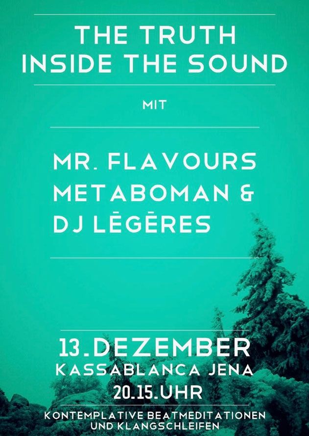 Geschrieben am 03. November 2015. Veröffentlicht in K2-Kategorie Veranstaltungen. The Truth Inside The Sound - 13. Dezember 2015 Kassablanca Jena weitere Infos ... Aufrufe: 174 Zurück Weiter