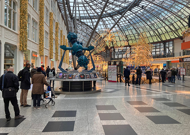 Neue Corona-Teststellen konnte Gerlitz heute jedoch nicht präsentieren. Angesichts von 3G- und 2G+-Regelungen war der Andrang am DRK-Testzentrum in der Goethe Galerie bereits die letzten Tage enorm.Die Warteschlange vor dem Testzentrum wollte die letzten Tage nicht abreißen. Foto: Thomas Paasch