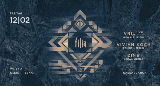 Geschrieben am 29. Januar 2016. Veröffentlicht in K2-Kategorie Veranstaltungen. Filia LIVE: VRIL | DJ's: Zine | Vivian Koch - 12. Februar 2016 Kassablanca Jena weitere Infos ... Aufrufe: 232 Zurück Weiter